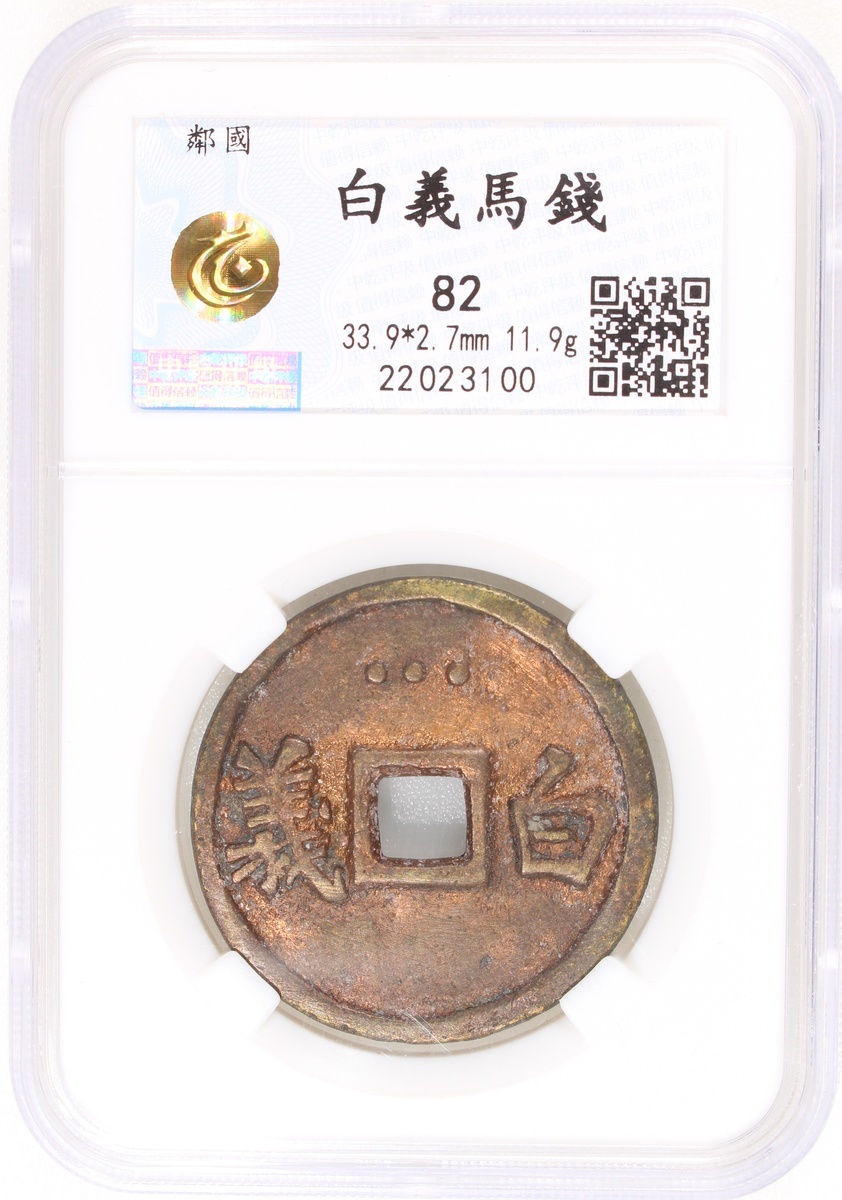 白義方穿馬錢,背馬,宋元(公元960–1368)時期,33.9*2.7mm,重11.9g,中乾82,標籤鄰國。好品。