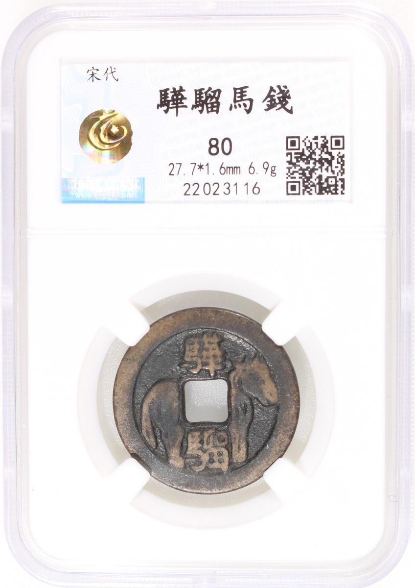 驊騮方穿馬錢,素背,宋朝(公元960–1279),27.7*1.6mm,重6.9g,中乾80。極美。