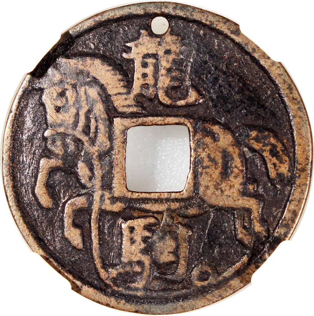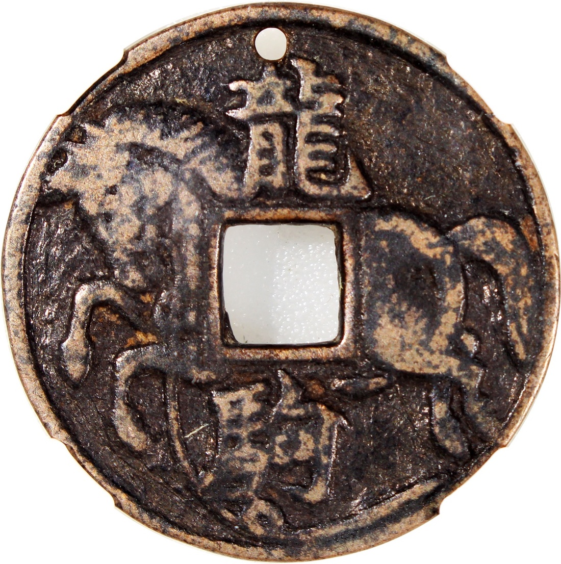 龍駒合背方穿馬錢,宋朝(公元960–1279),29.9*1.4mm,重6.0g,中乾真品。