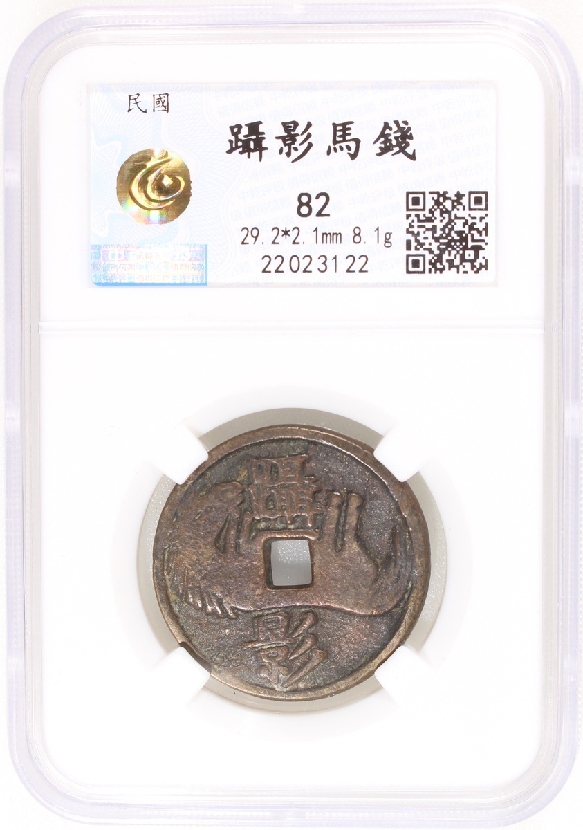躡影方穿馬錢,素背,明清(公元1368–1911)時期,29.2*2.1mm,重8.1g,中乾82,標籤民國時期。極美。