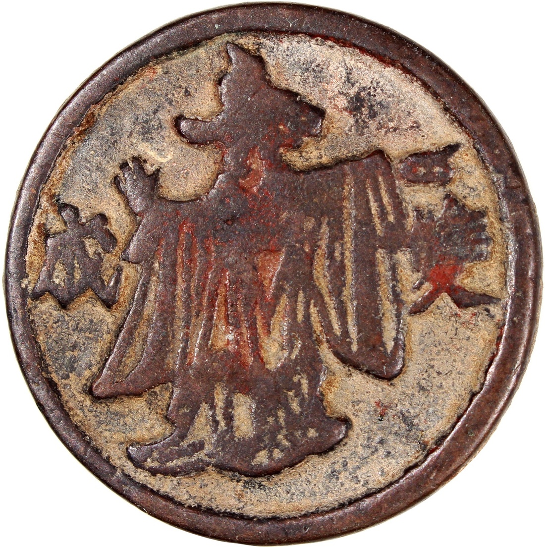 China: Song-Yuan Dynasty (960-1368 CE), coin-shaped charm, obverse inscribed 'Shuang cheng' showing fairy god, reverse inscribed a poem, 33.2*2.7mm, 15.1g. Rare for square hole on this type.