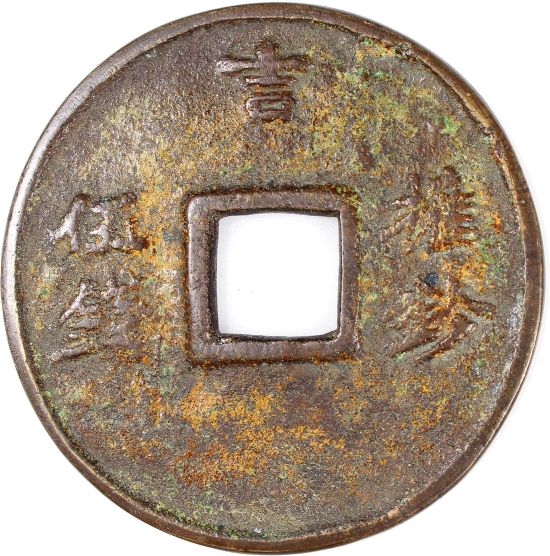 至正之寶方孔花錢,背吉、權鈔、伍錢,民國(公元1911–1949),28.3*2.9mm,重87.8g。