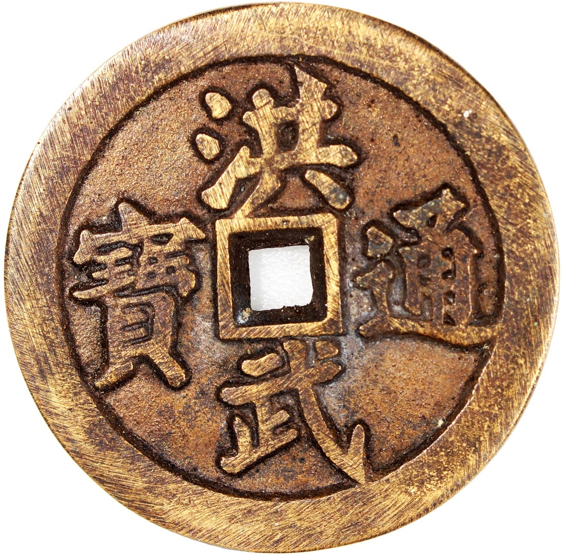 洪武通寶方穿錢文花錢,背童子牧牛,民國(公元1911–1949),37.1*3.3mm,重16.5g。