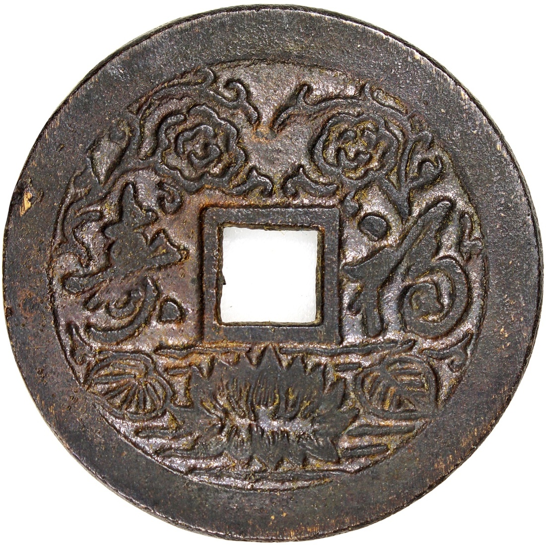 正德通寶方穿錢文花錢,背福壽,民國(公元1911–1949),45.4*2.3mm,重25.4g。另:此錢為陳鴻禧著《玩錢集》(臺中1987)第703號。