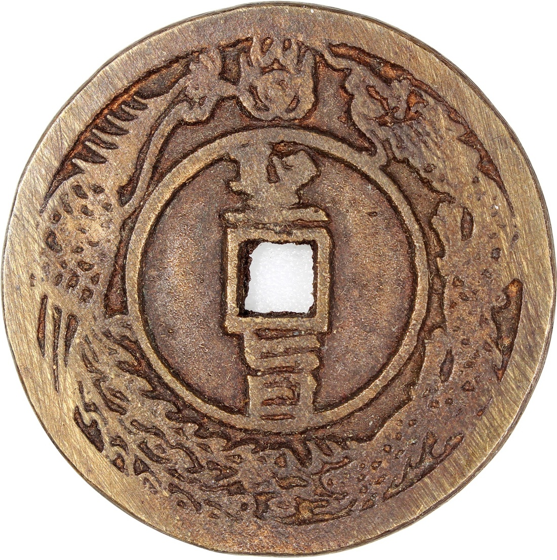 China: Republican Period (1911-1949 CE), coin-like charm with square central hole, obverse inscribed 'Zheng de tong bao', reverse inscribed 'Sheng zhi', 40.5*2.4mm, 22.0g.