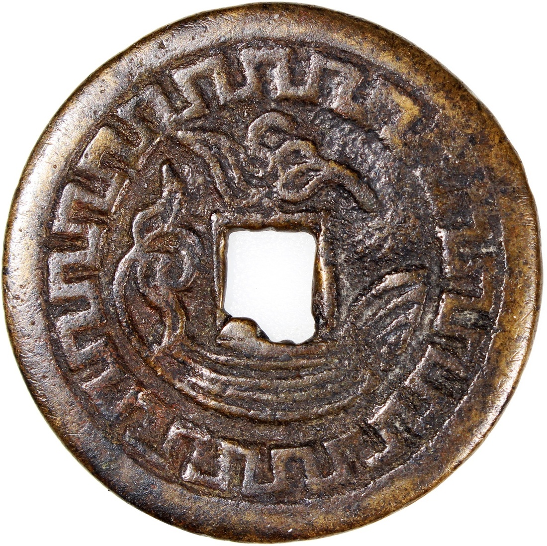 China: Qing Dynasty (1644-1911 CE), coin-shaped charm with square central hole, obverse showing flowers, reverse showing flowers, 37.8*0.9mm, 12.0g. Rare.