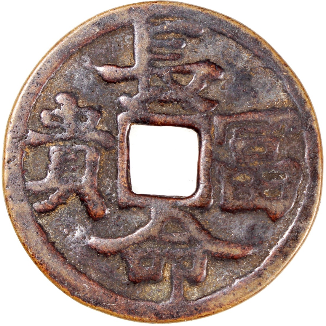 長命富貴方穿花錢,背長命富貴飛鳥花卉,宋元(公元960–1368)時期,31.8*1.8mm,重9.4g。美品。