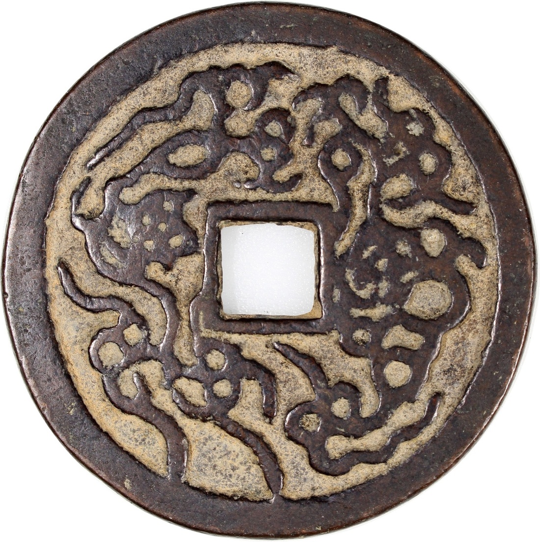 篆書壽比南山方穿花錢,背龍鳳,清朝(公元1644–1911),55.1*3.3mm,重54.1g。極美,少見。