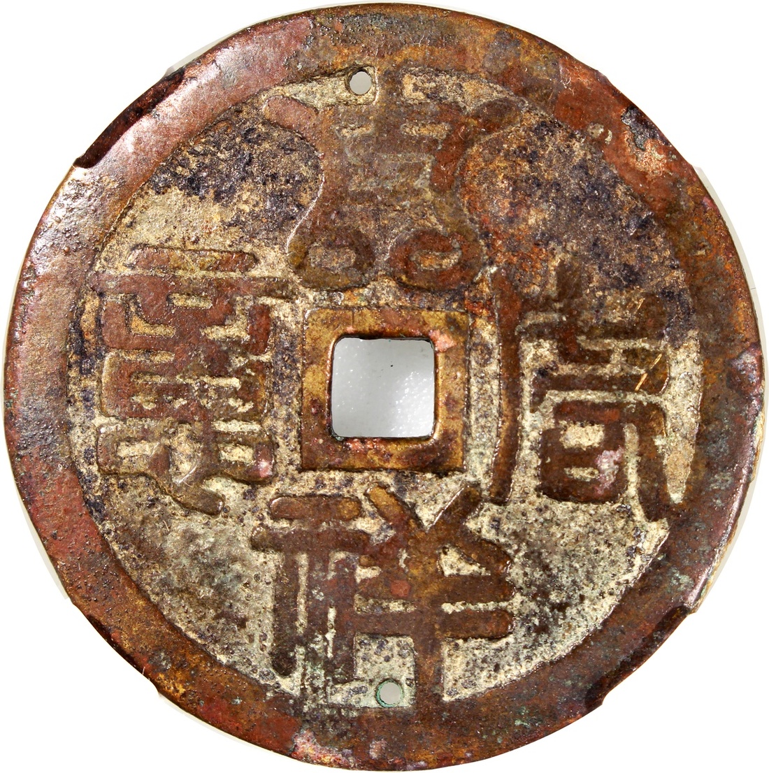China: Qing Dynasty (1644-1911 CE), coin-shaped charm with square central hole, Zhejing mint production, obverse inscribed 'Fu shou shuang quan' in seal script, reverse inscribed 'Ji xiang ru yi' in seal script, 45.4*2.3mm, 25.7g, Zhong Qian Genuine. Rare.