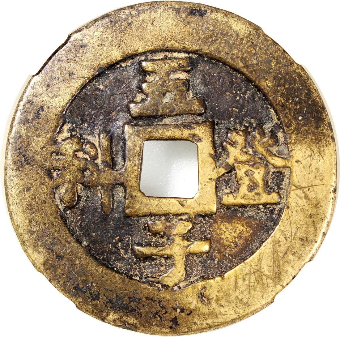 京爐五子登科方孔花錢,背吉祥,清朝(公元1644–1911),49.2*3.4mm,重43.6g,中乾真品。少見。另:此錢之錢體形制與書體風格極為大氣,與數枚已知宮錢極為近似,包括富貴雙全背康寧錢(方稱宇著《中國花錢與傳統文化》第72號,2008年商務印書館出版)、龍鳳呈祥背福壽錢(北京保利2023年秋季拍賣會第15193號)、指日高昇背如意錢(北京嘉德2017年春季拍賣會第8417號)。