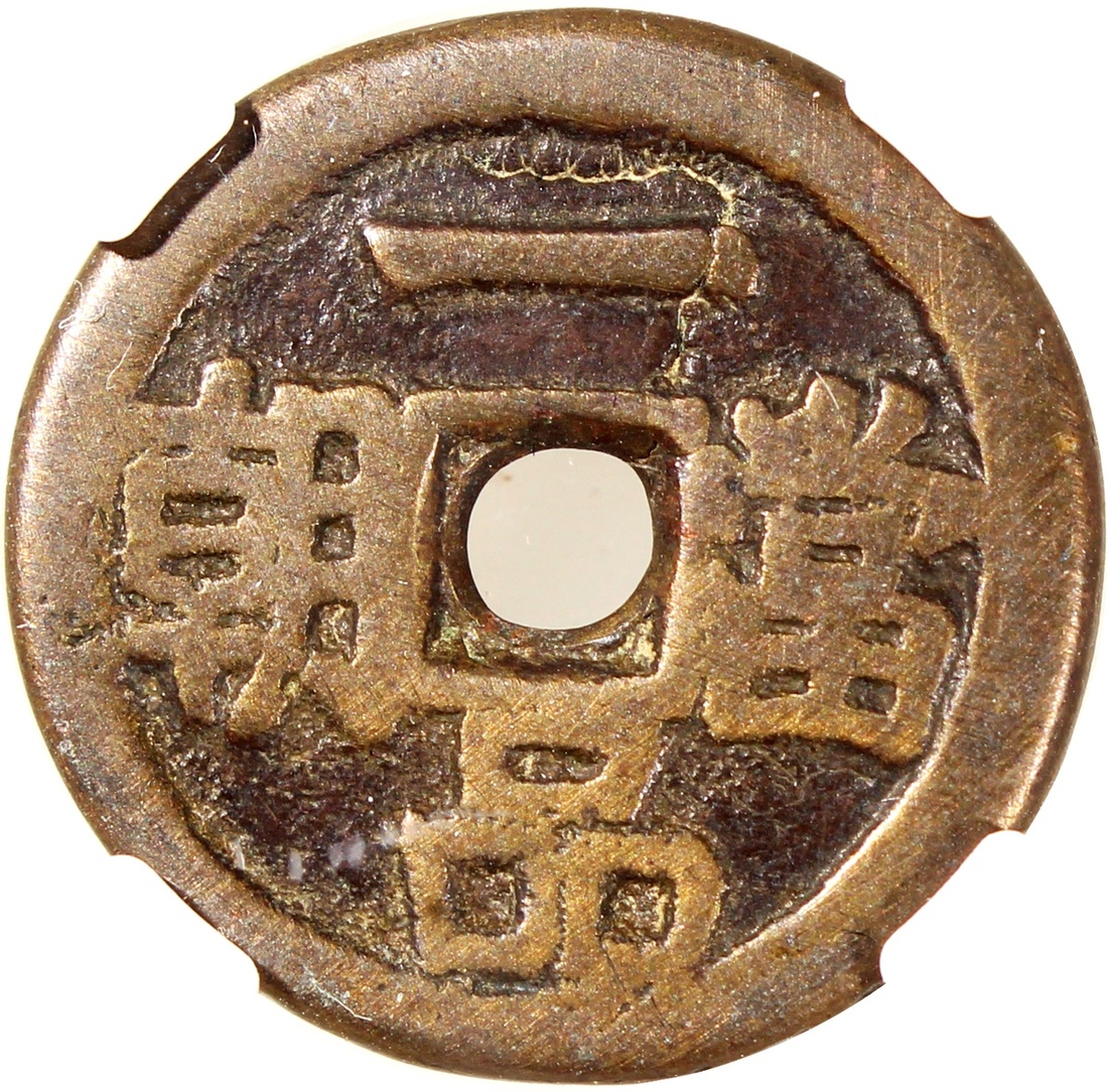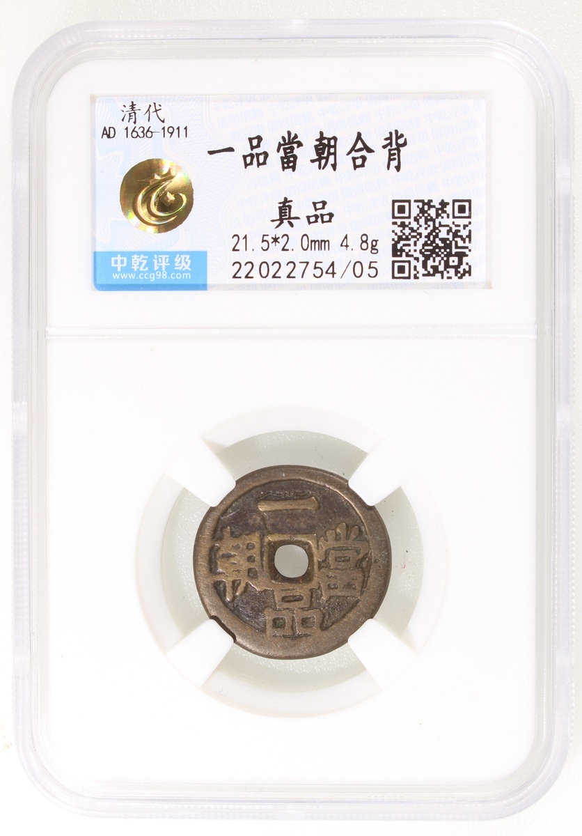 一品當朝合背方孔花錢,清朝(公元1644–1911),21.5*2.0mm,重4.8g,中乾真品。