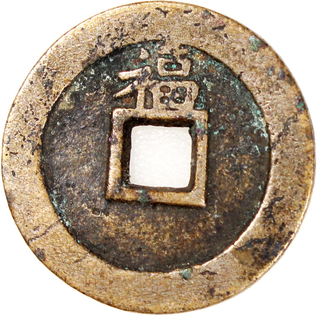 China: Qing Dynasty (1644-1911 CE), coin-shaped charm with square hole, Jiangsu mint production, obverse inscribed 'Zhuang yuan ji di', reverse inscribed 'Fu' above central hole 20.7*1.1mm, 2.8g. Rare type. Note: It is extremely rare to come across one-cash-sized charms from the Jiangsu mint.