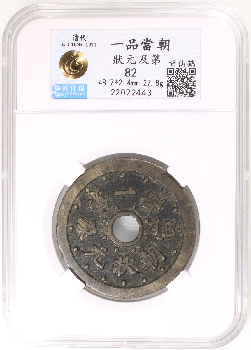 蘇爐一品當朝狀元及第圓穿花錢,背一路榮華,清朝(公元1644–1911),48.7*2.4mm,重27.8g,中乾82。