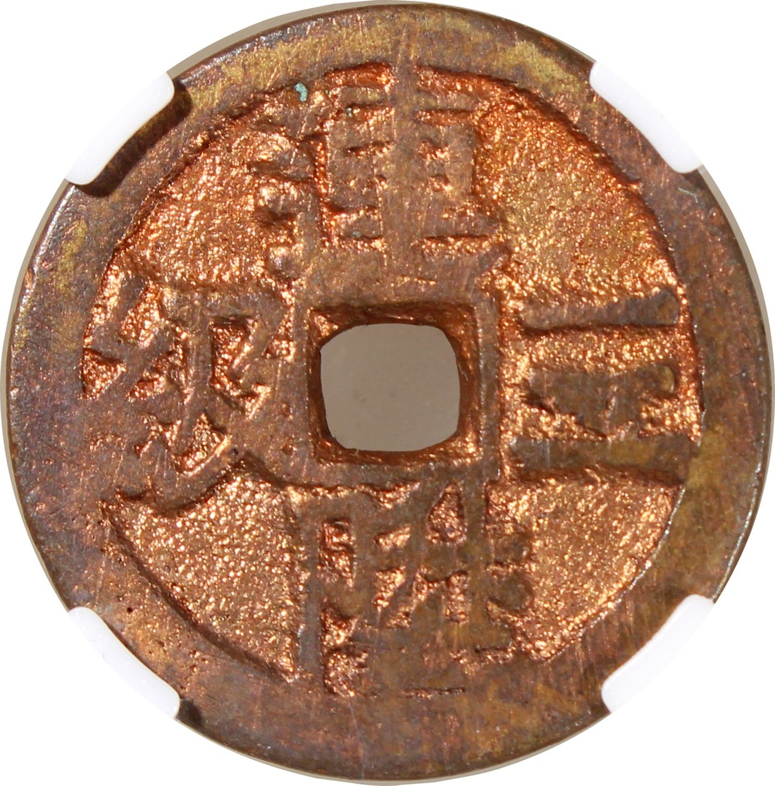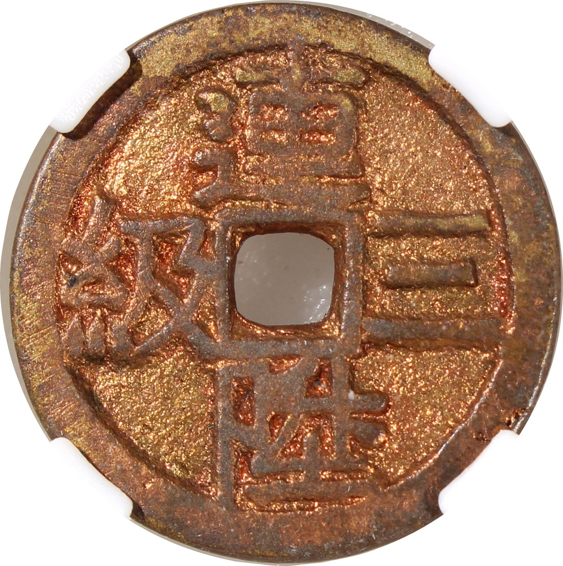連陞三級合背方穿花錢,清朝(公元1644–1911),20.8*1.7mm,重4.0g,中乾82。少見品。