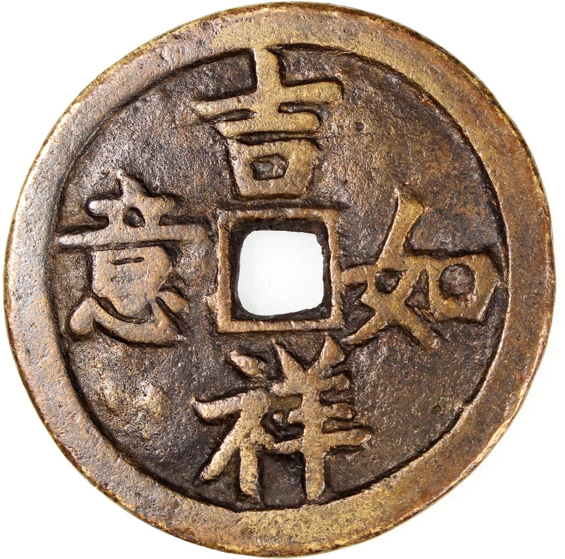 吉祥如意方孔花錢,背三多,清朝(公元1644–1911),44.4*3.5mm,重37.7g。