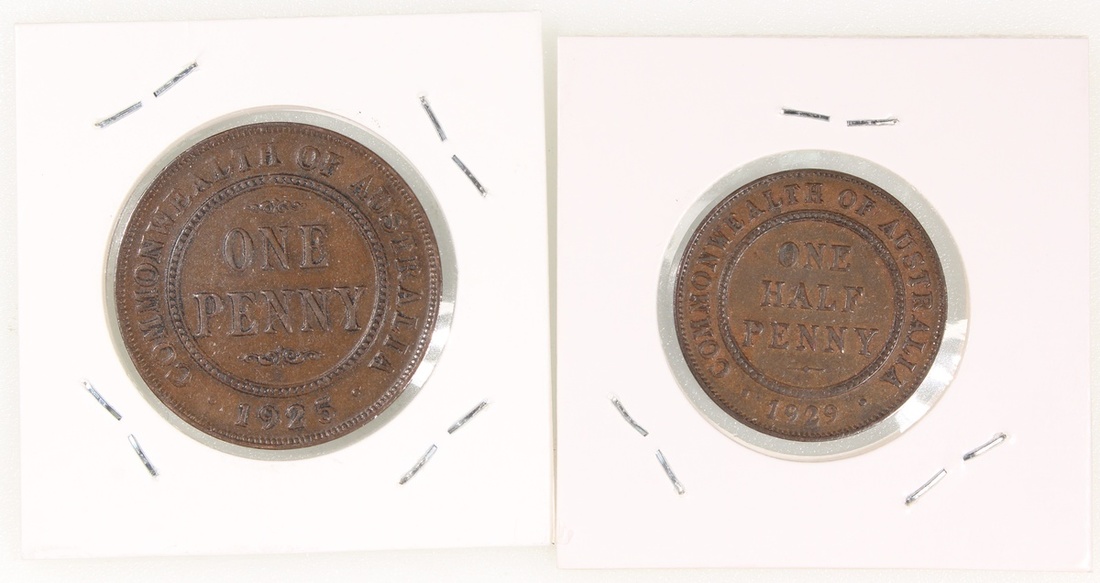 Australia, a pair of half penny, 1929 and 1 penny, 1925, key date, both extremely fine, half penny scarce (2).