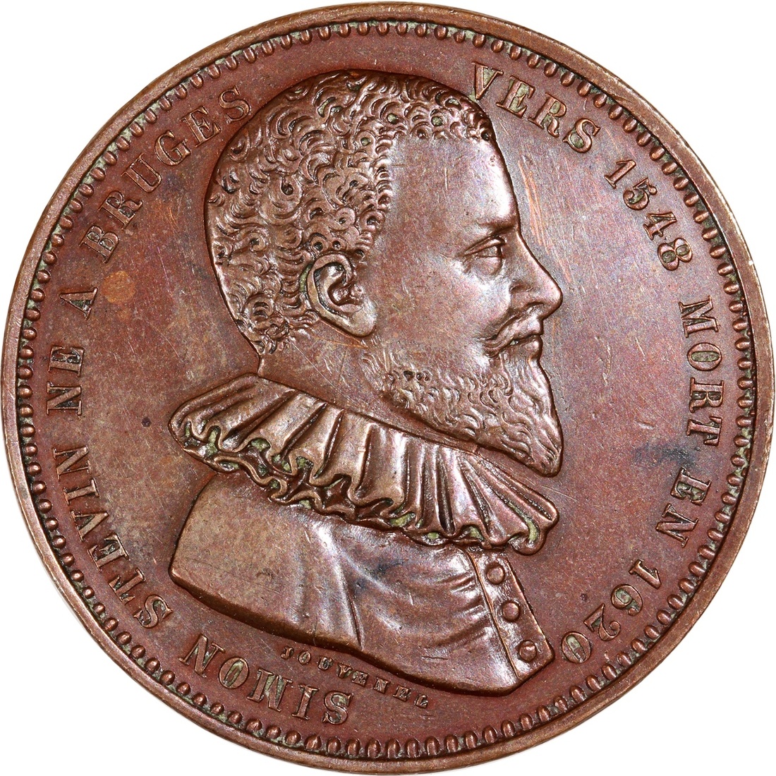 Belgium, copper souvenir token, Simon Stevin on obverse, ND(1920), about extremely fine.