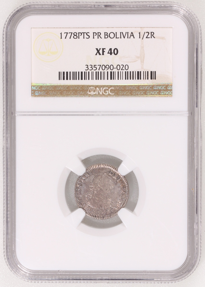 1778 PTS PR玻利維亞1/2雷亞爾銀幣,NGC XF40,NGC僅得2枚評級紀錄