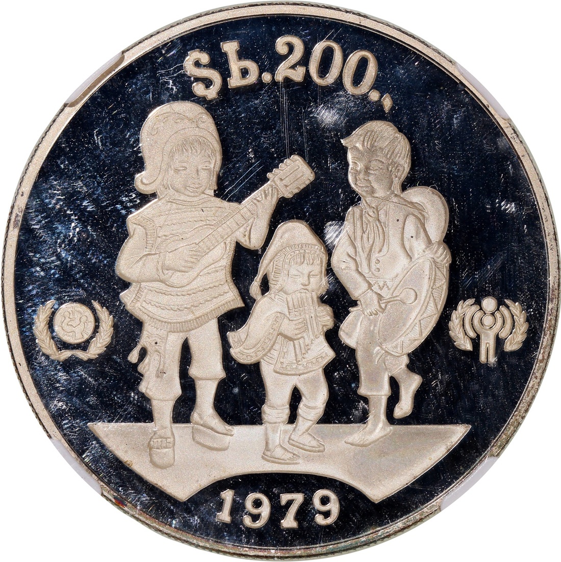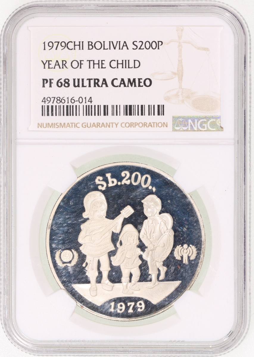 Bolivia, silver proof 200 pesos bolivianos, 1979CHI, Year of the Child, NGC PF 68 Ultra Cameo, #4978616-014.
