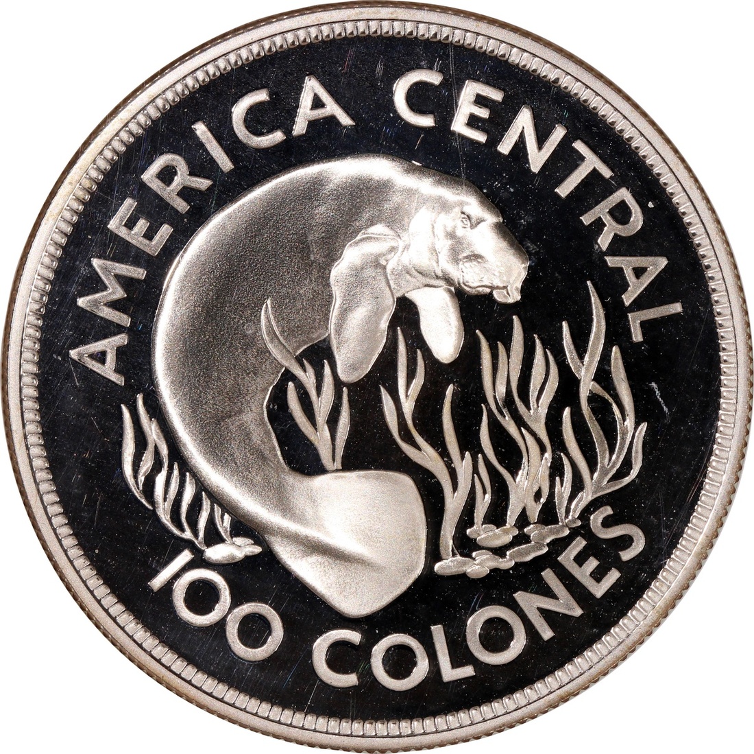 Costa Rica, a pair of silver proof 50 and 100 colones, 1974, Conservation Series, "Sea Turtle" and "Manatee",