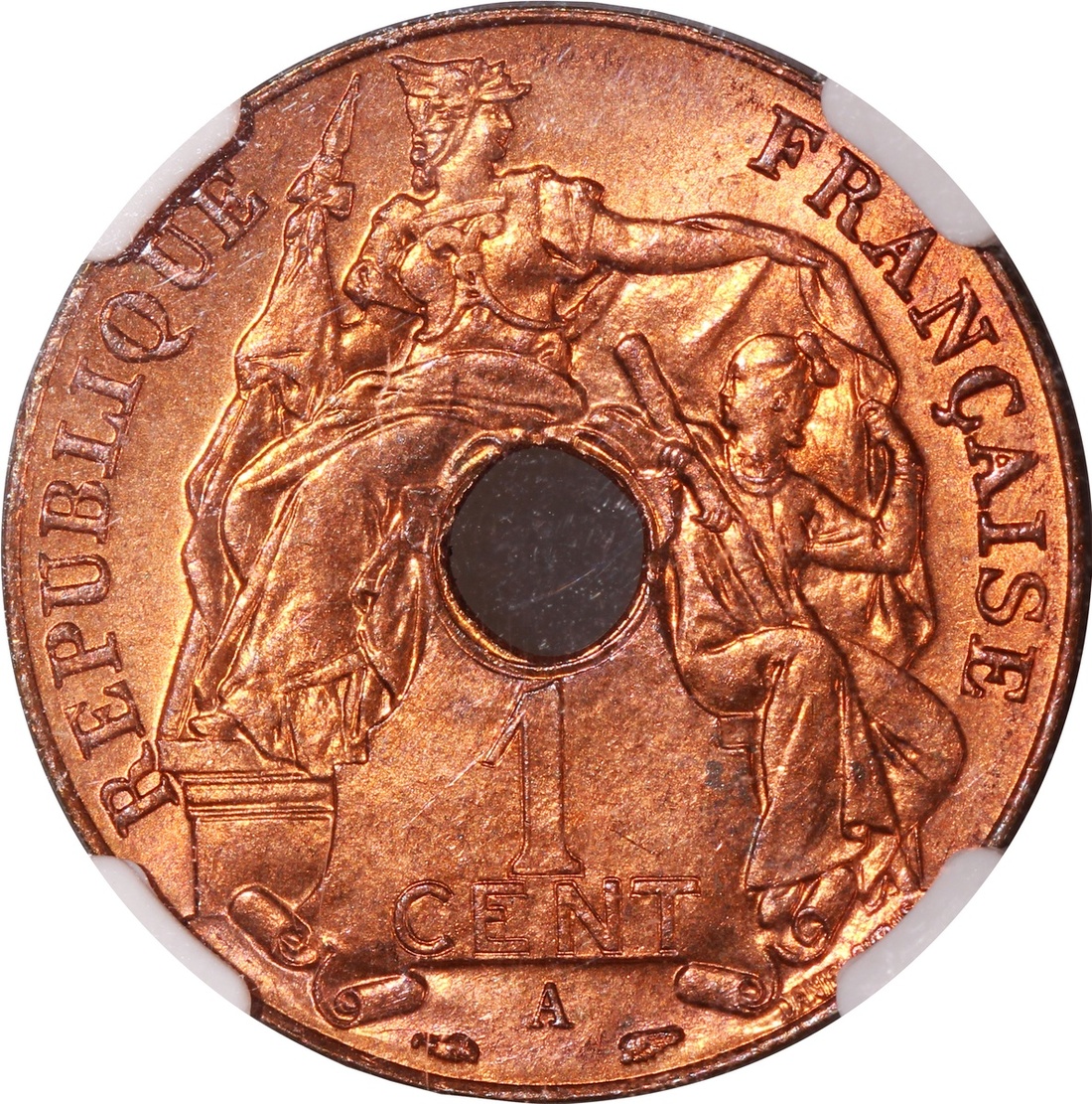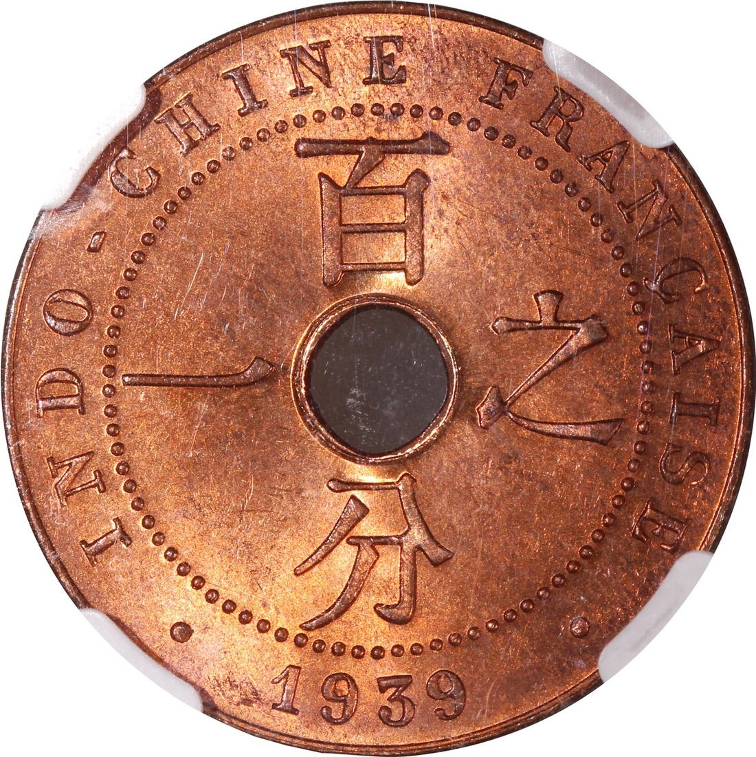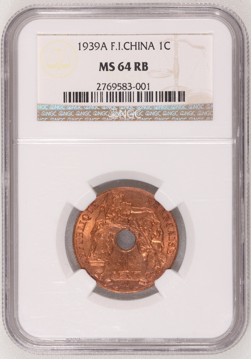 French Indo China, 1 cent, 1939A, NGC MS64RB, #2769583-001.