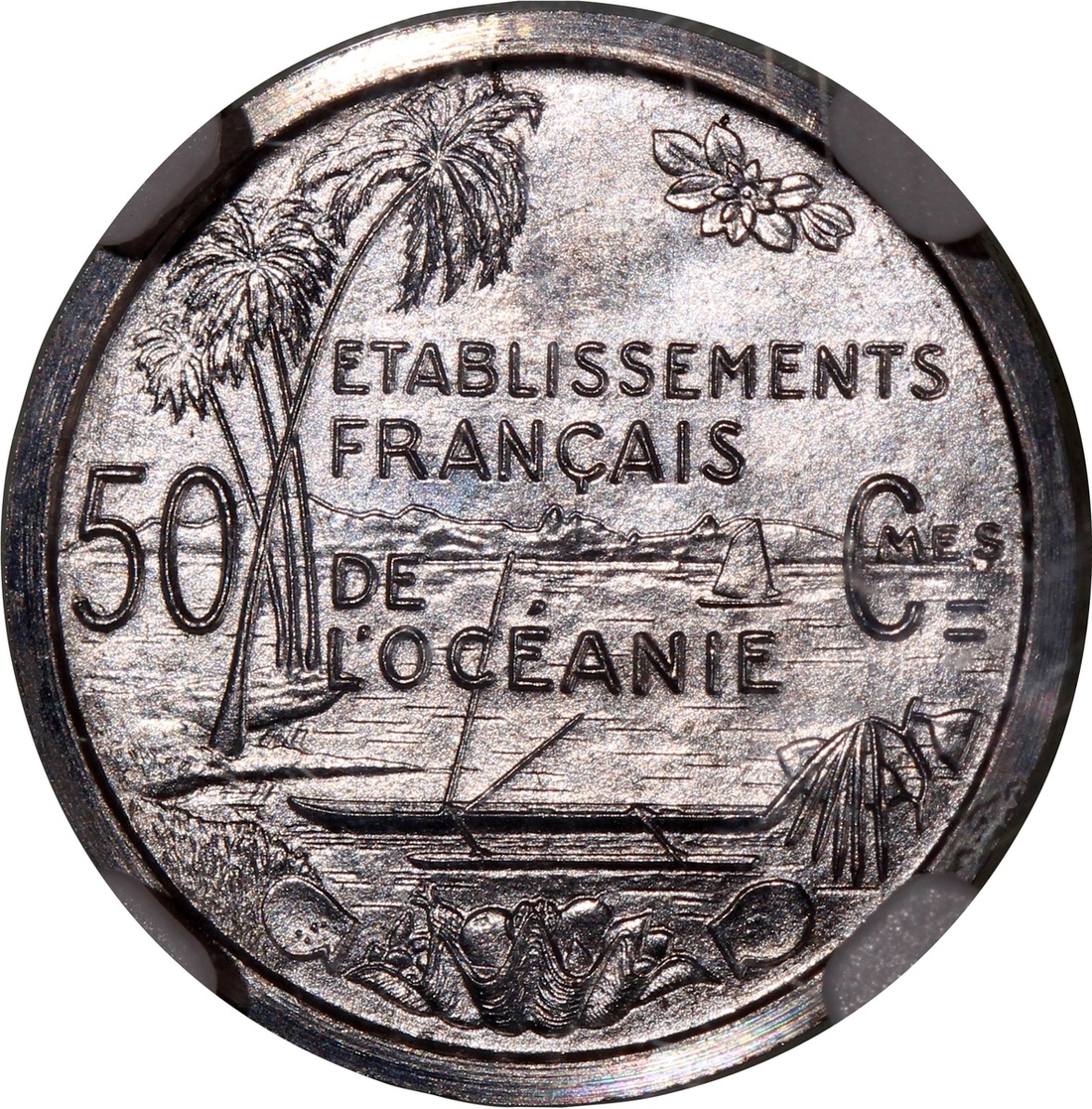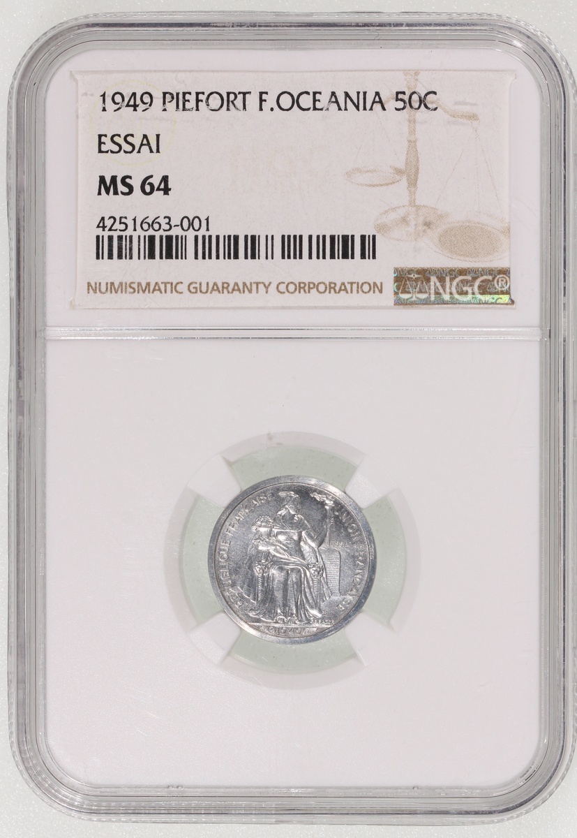 French Oceania, piefort 50 cents, 1949, ESSAI, NGC MS64, #4251663-001, limited mintage of 104 pieces .