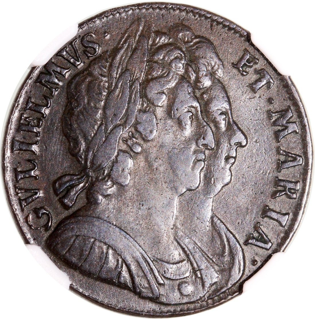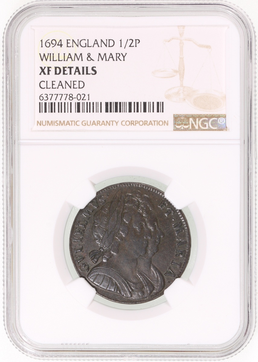 England, 1/2 penny, 1694, William & Mary, NGC XF Details (Cleaned), #6377778-021.