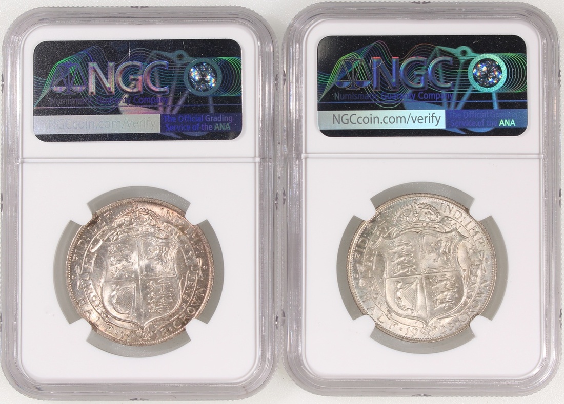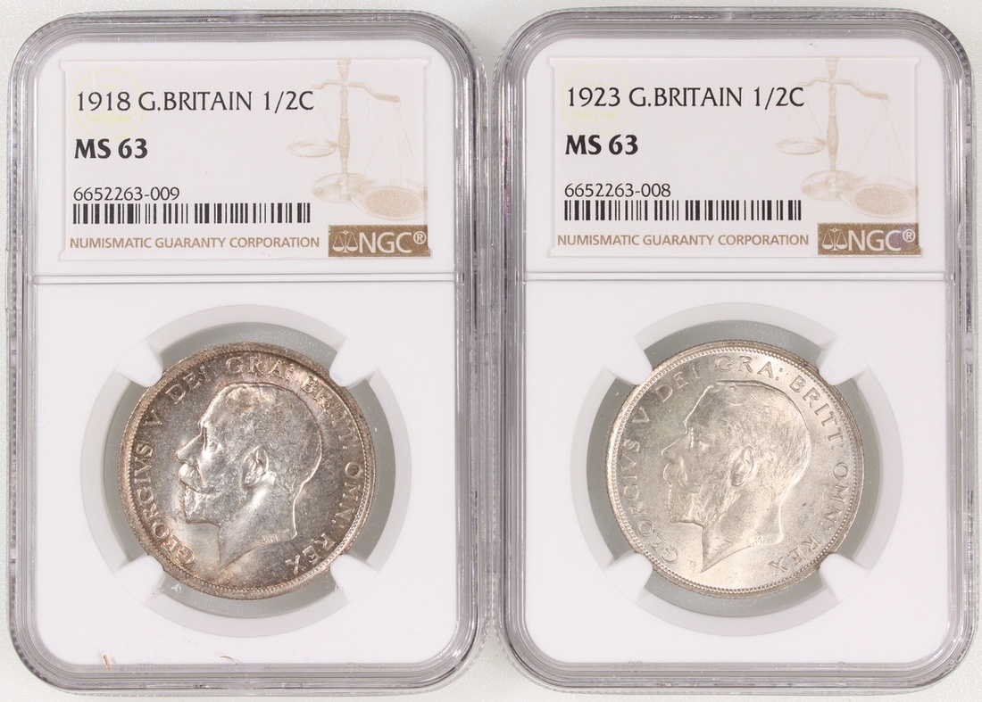 1918及1923年英國半克朗銀幣,均NGC MS63,原光熠熠