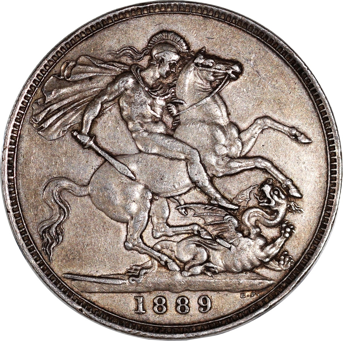 Great Britain, silver 1 crown, 1889, 'Jubilee' bust on obverse, St. George and the dragon on reverse, Extremely Fine, light toning