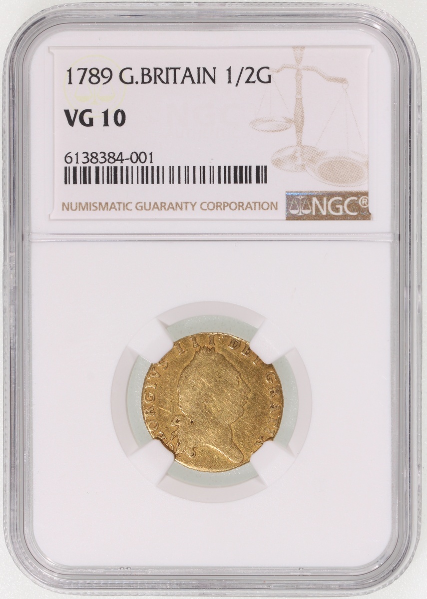 Great Britain, gold 1/2 guinea, 1789, NGC VG10, #6138384-001.