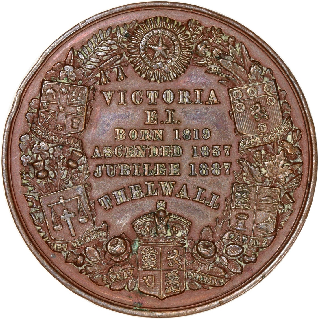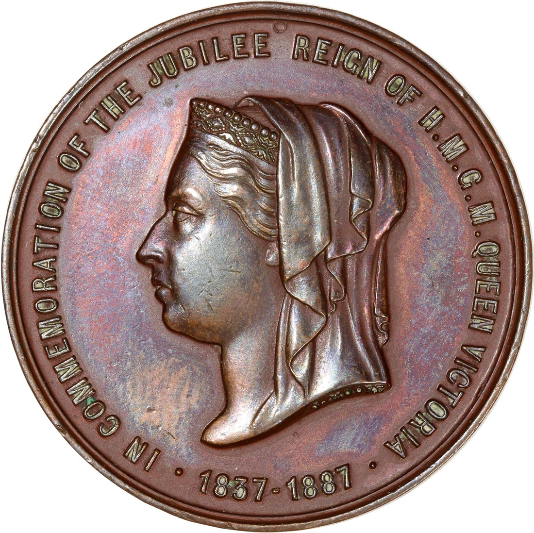 Great Britain, bronze medal, Golden Jubilee, 1887, by J. Moore, about uncirculated.