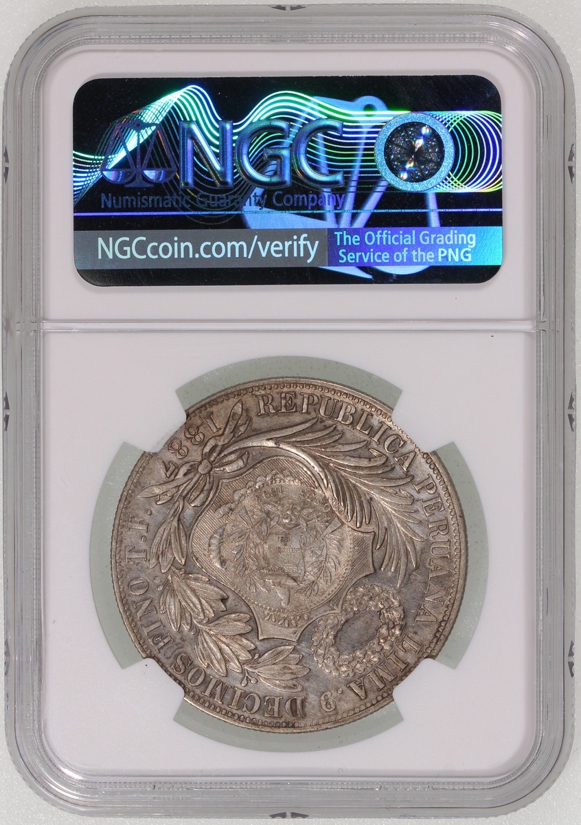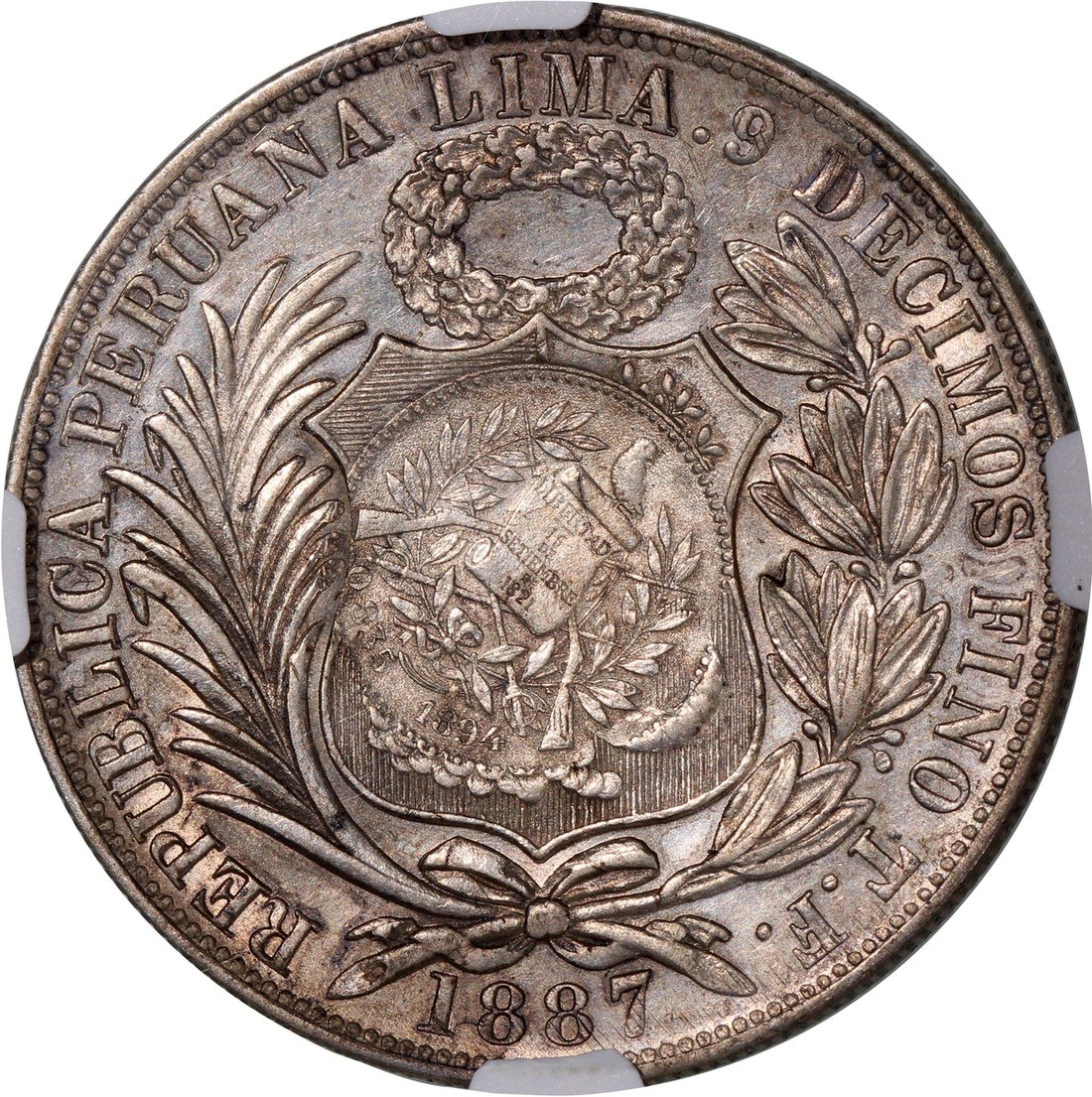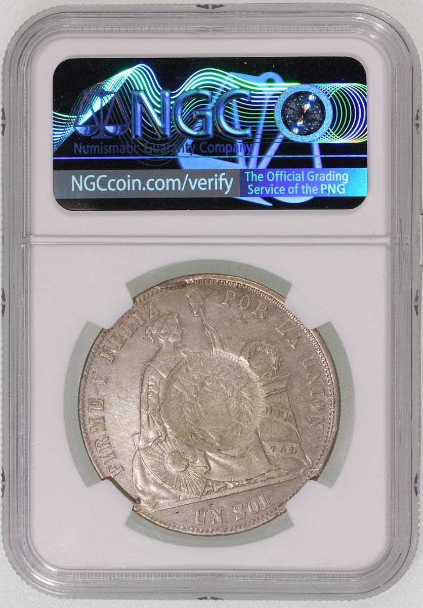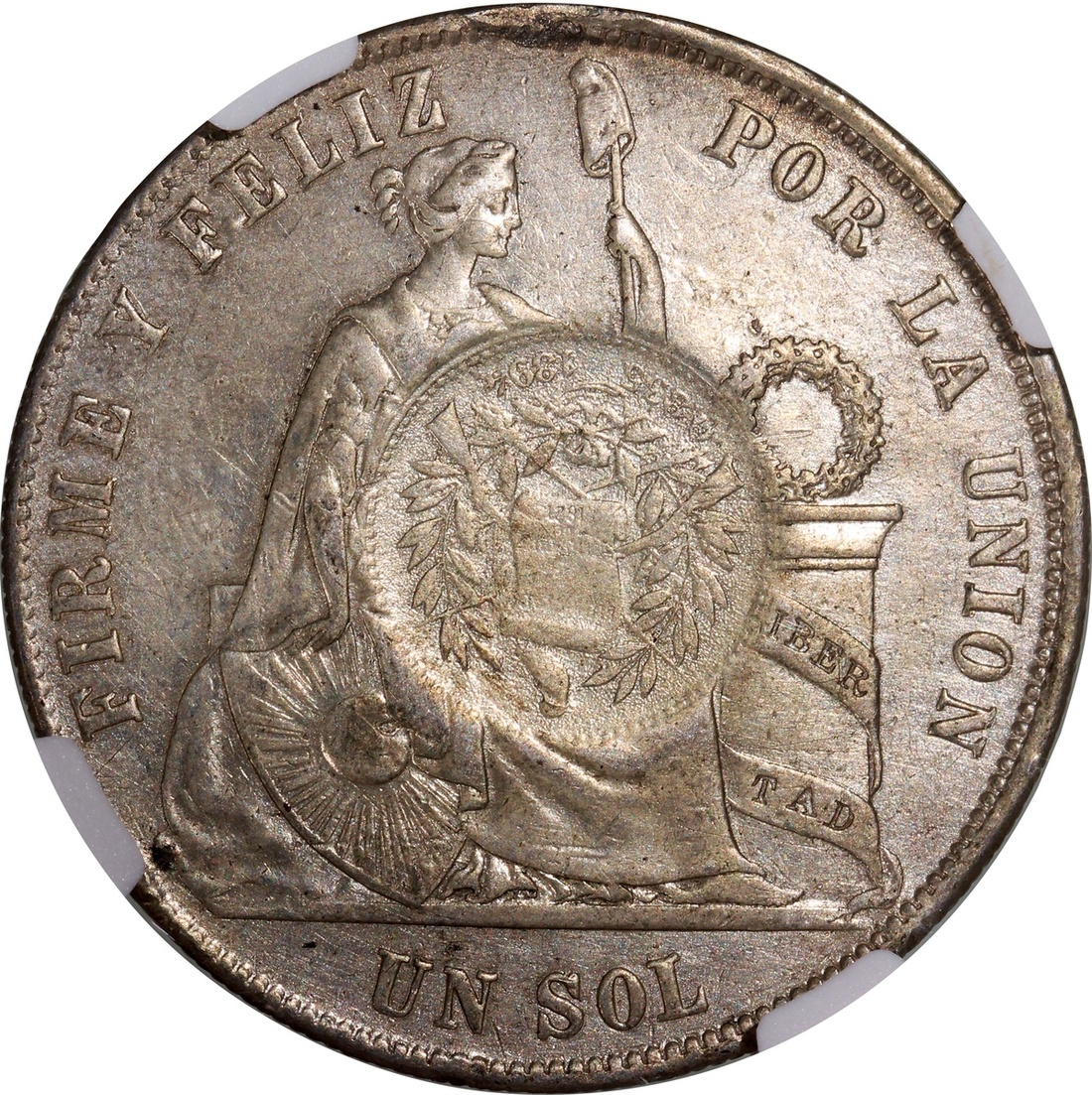 Guatemala, a pair of silver peso, 1894, 1869 and 1887 1/2 real counterstamped on peru sol, both graded NGC AU Details (Cleaned), #6378351-008 and -011 (2).