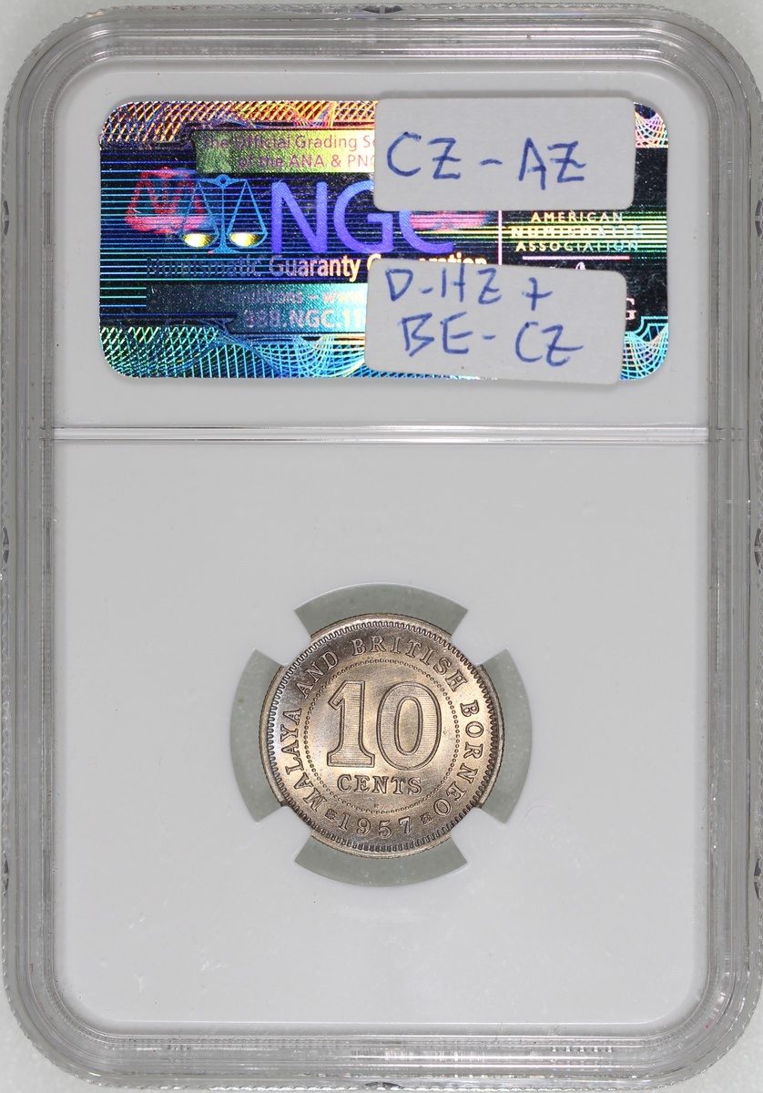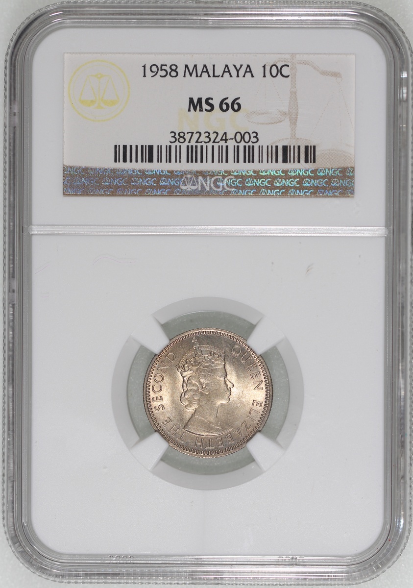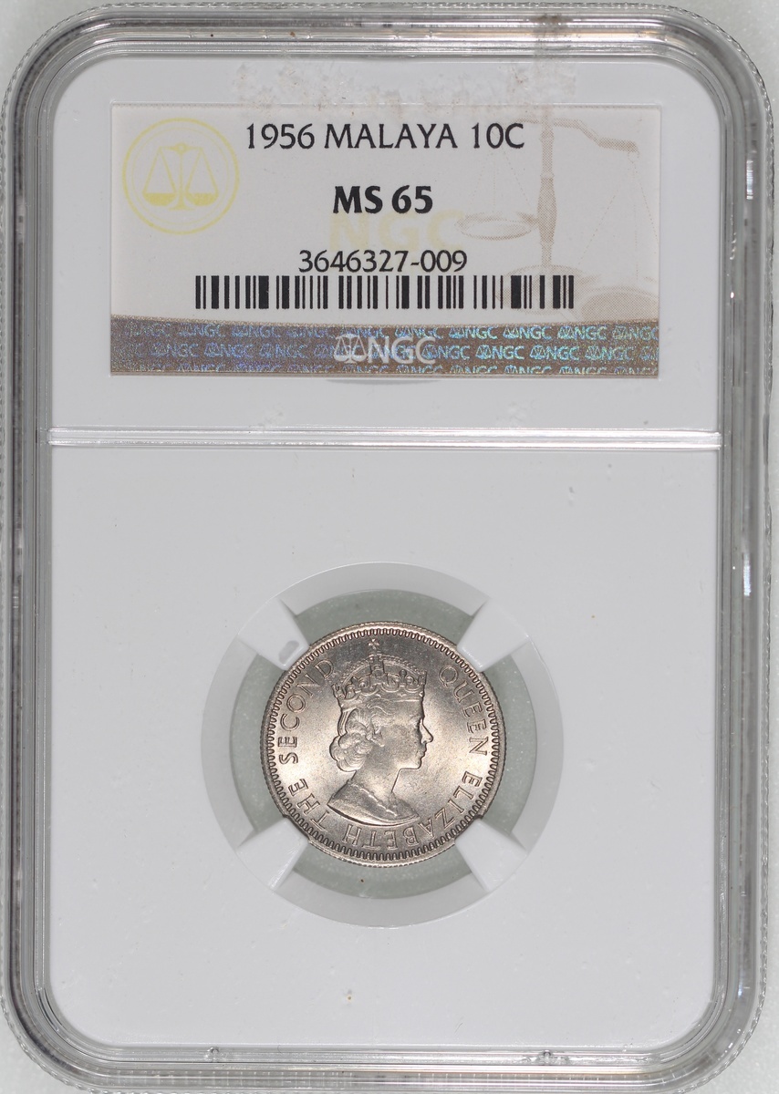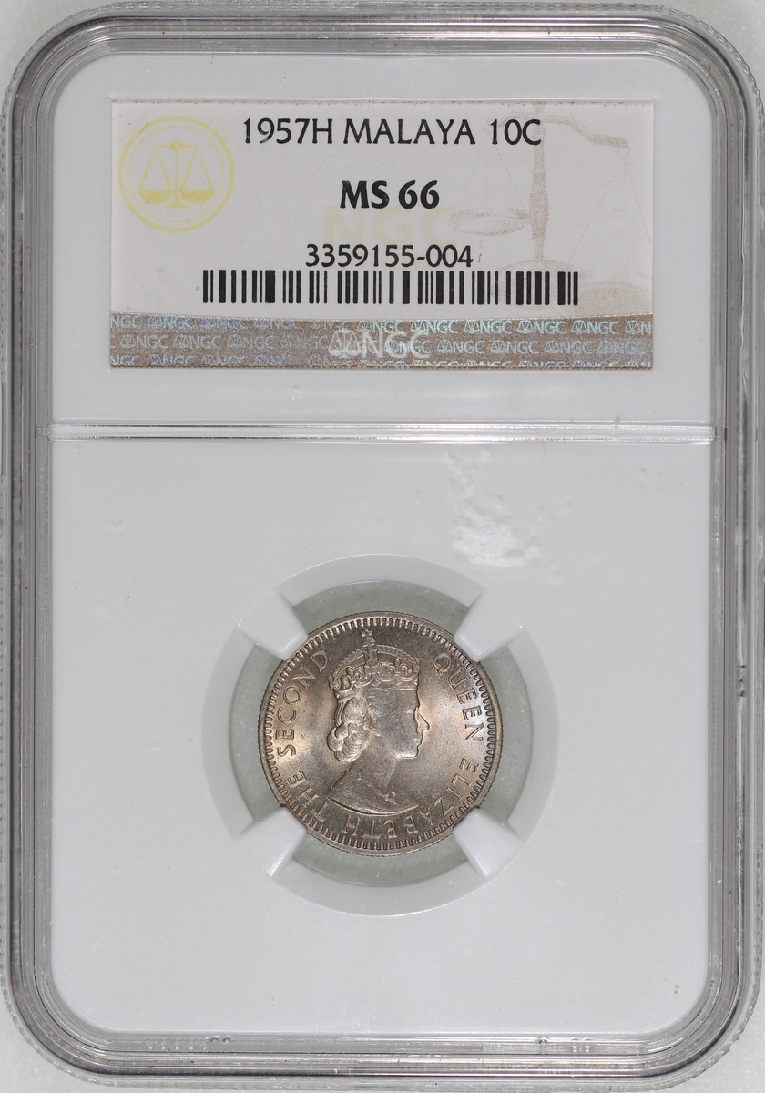 Malaya and British Borneo, a group of 3x 10 cents, 1956, 1957H, 1958, NGC MS65, MS66, MS66, #3646327-009, 3359155-004, 3872324-003 (3)