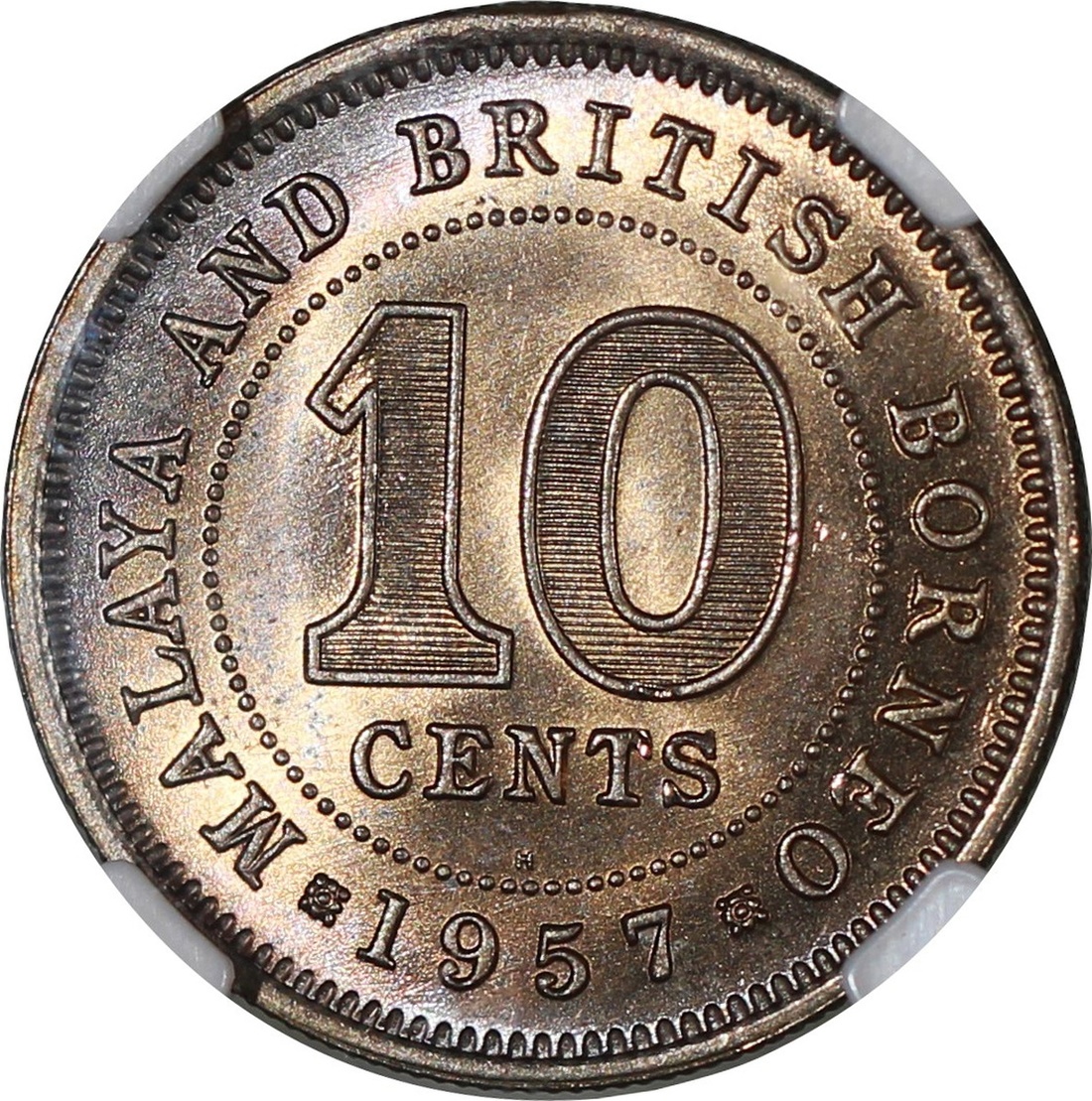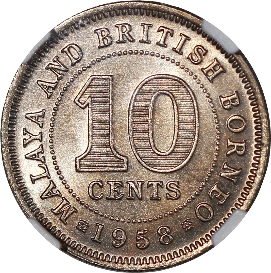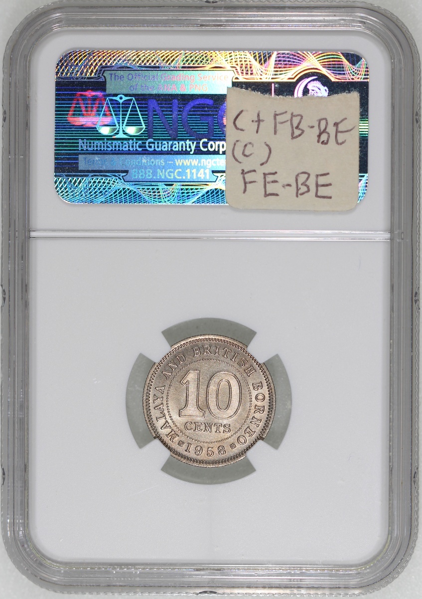 Malaya and British Borneo, a group of 3x 10 cents, 1956, 1957H, 1958, NGC MS65, MS66, MS66, #3646327-009, 3359155-004, 3872324-003 (3)