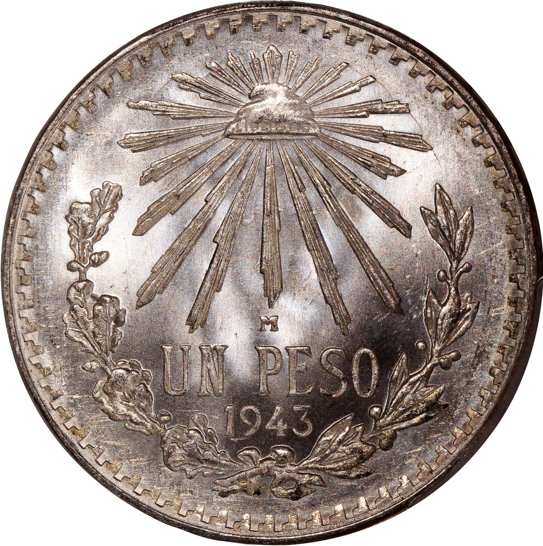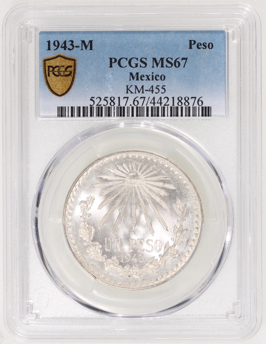 Mexico, silver peso, 1943-M, (KM-455), PCGS MS67, #44218876.