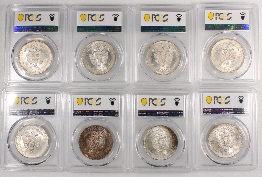 1944M墨西哥披索銀幣一組8枚,均PCGS MS66