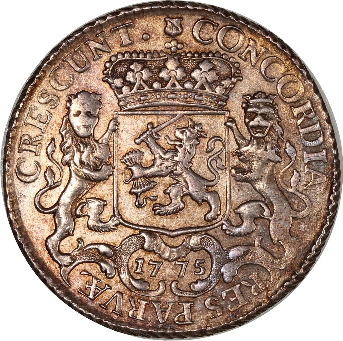 Netherlands, Utrecht, silver 1/2 ducation, 1775, weight 16.15g, about uncirculated.