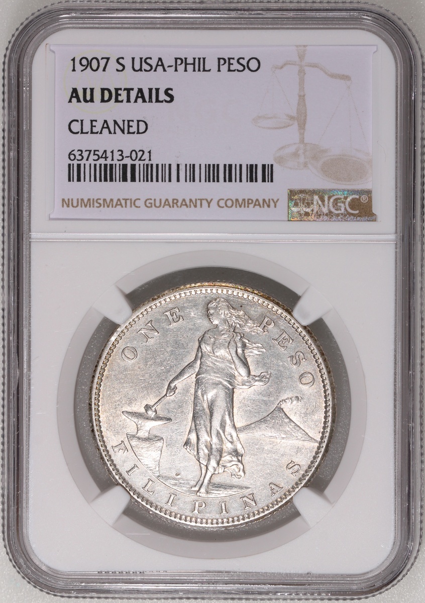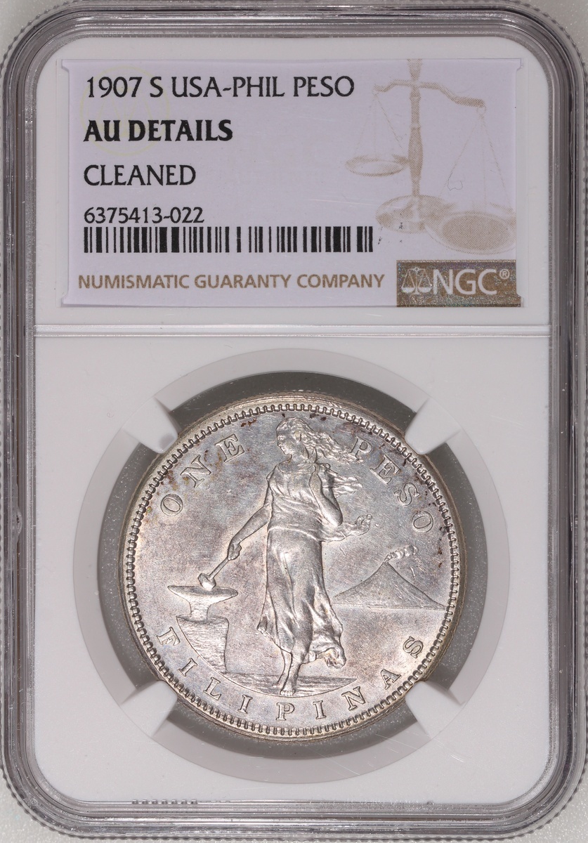 USA-Philippines, a pair of silver 1 peso, 1907S, both NGC AU Details, cleaned. Cert.# 6375413-021, 022