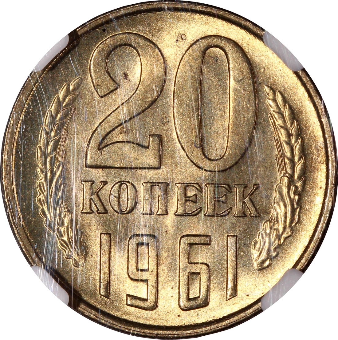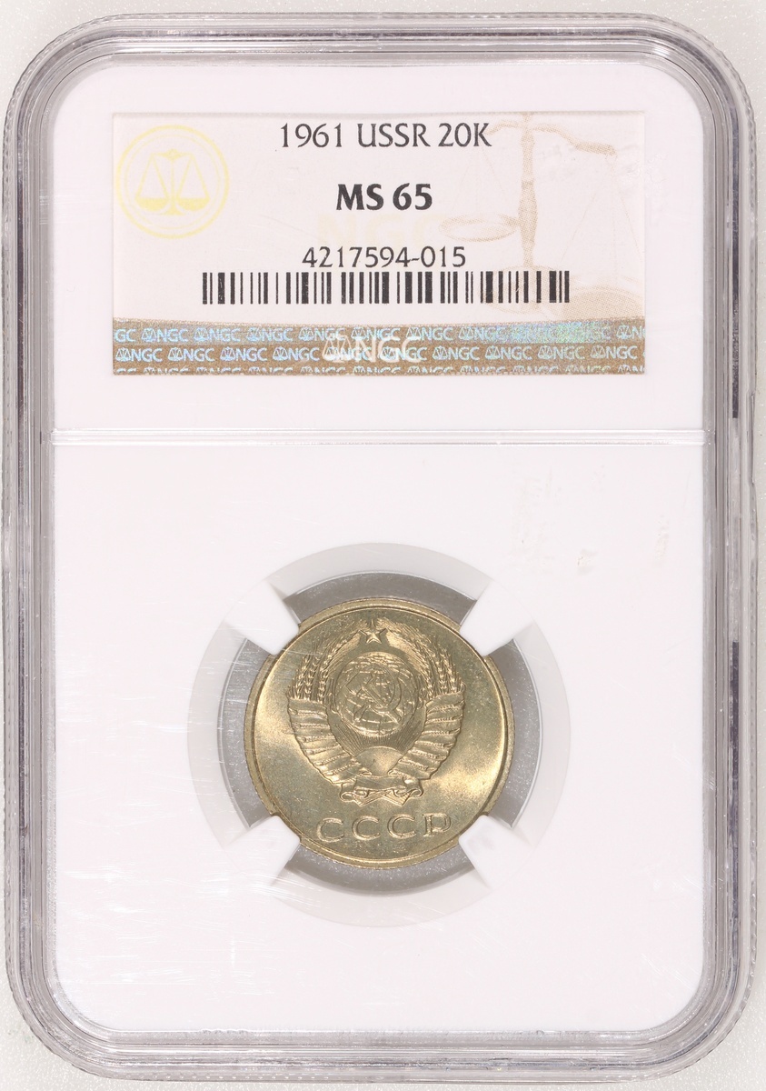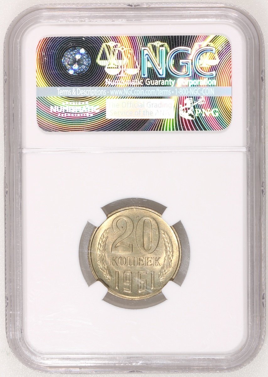 Soviet Union, 20 kopecks, 1961, NGC MS65, the second highest grade in NGC population report, with only one coin graded higher at MS66.