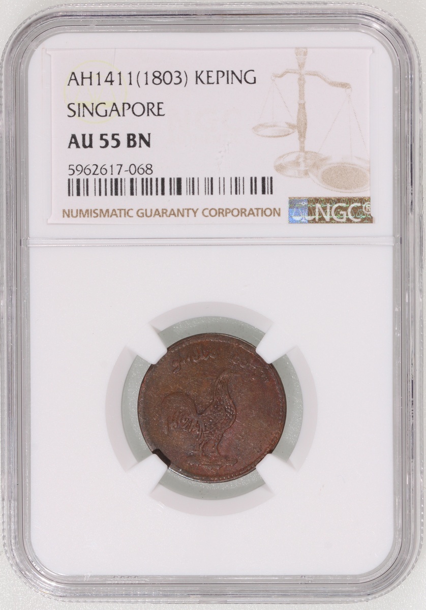 Singapore, 1 keping, AH1411(1803), NGC AU55BN, #5962617-068.