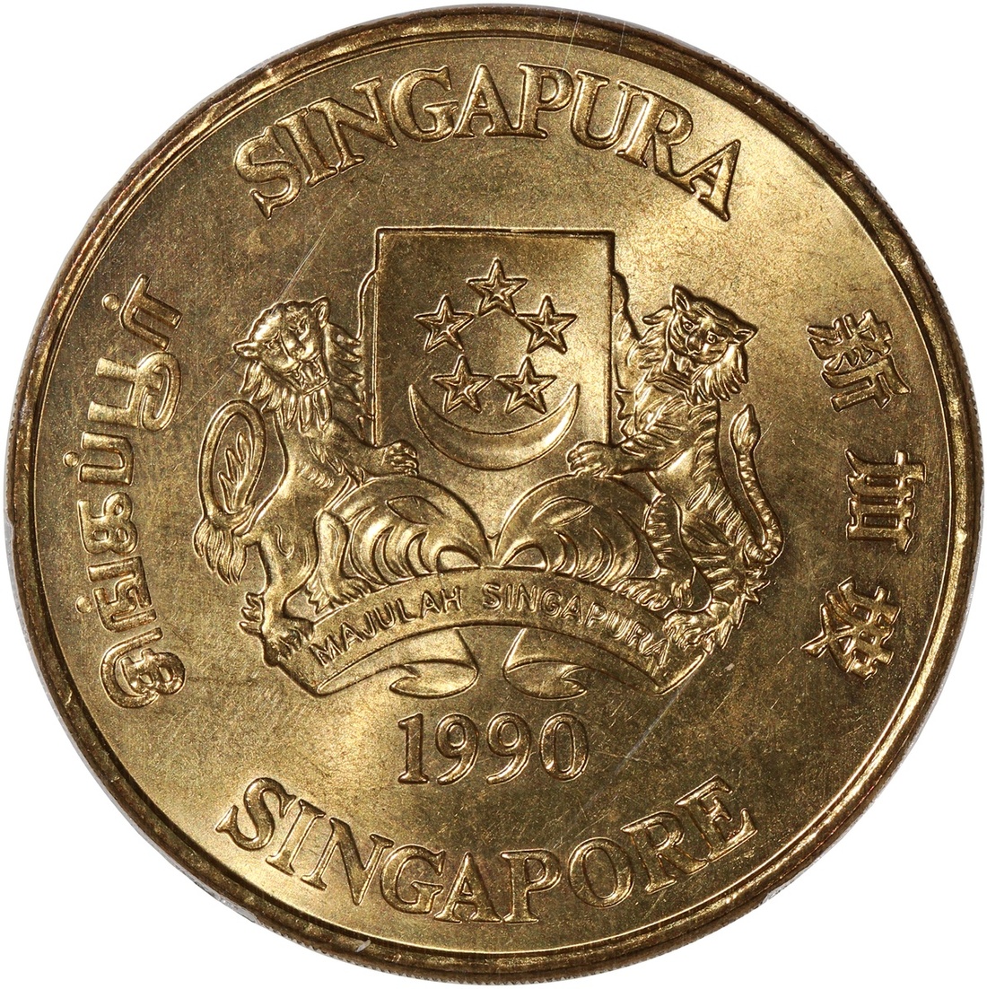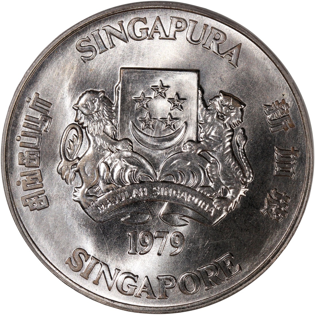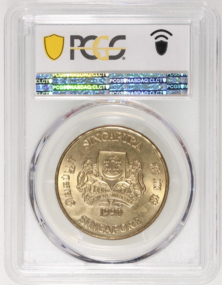 1990年新加坡獨立25週年紀念5元,及1979年衛星通訊紀念10元,均PCGS MS67