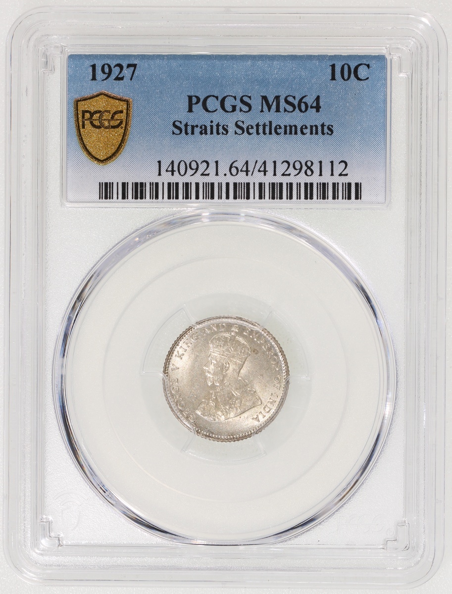 Straits Settlements, silver 10 cents, 1927, PCGS MS64, #41298112.