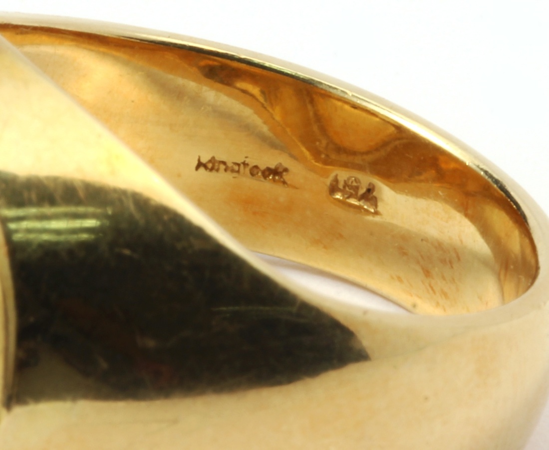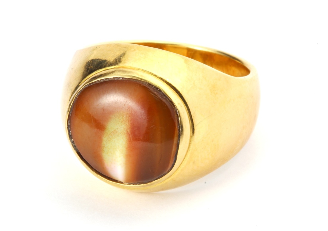 鑲棕色猫眼石K金男裝戒指, 帶景福 "Kingfook" 英文刻記. 石連金重量: 0.503tl