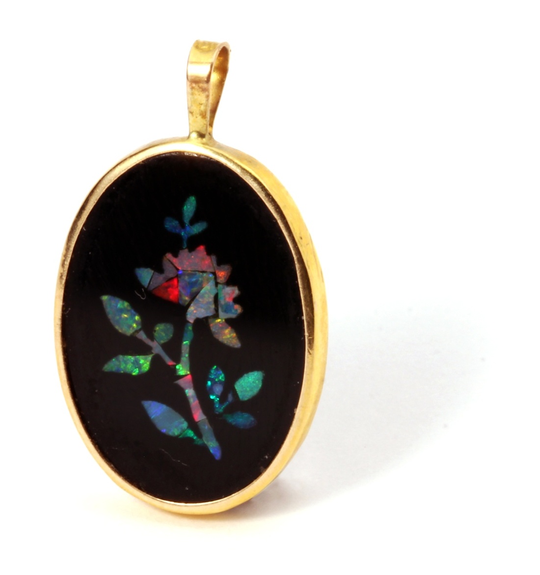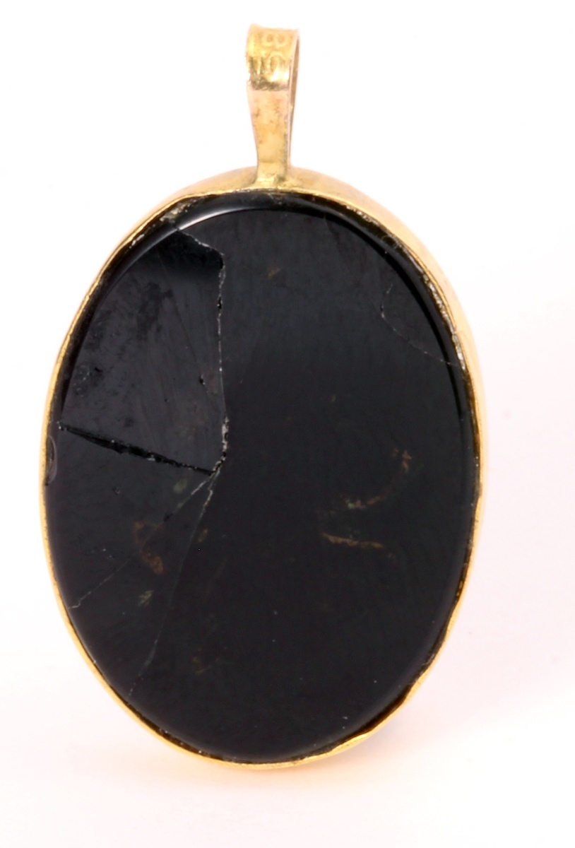 鑲方形奔馬圖案閃石14K 金戒指一件及橢圓形閃石花卉圖案(背有裂痕) 包金邉吊墜一件. 重量: 戒指0.212g 吊墜 0.031tl