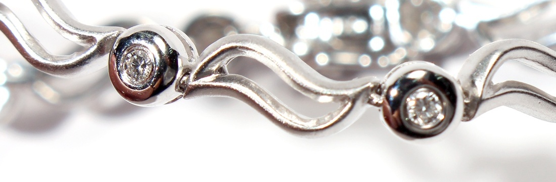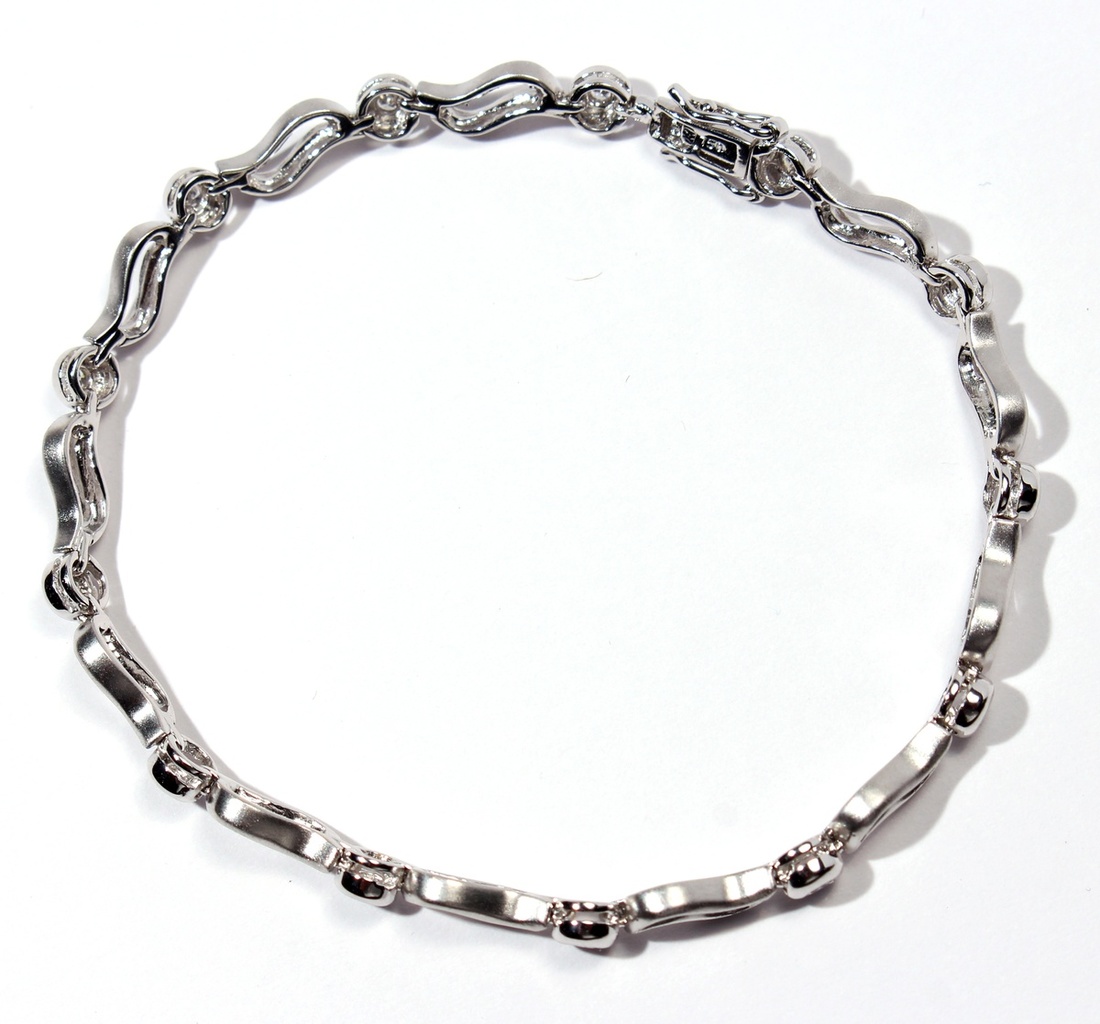 18K白金鑲鑽石手鍊, 手鍊呈水波紋設計, 再鑲嵌13顆小鑽石其中, 形成獨特之線條美. 手鍊上刻有"750" 字樣. 重量: 共0.257tl
