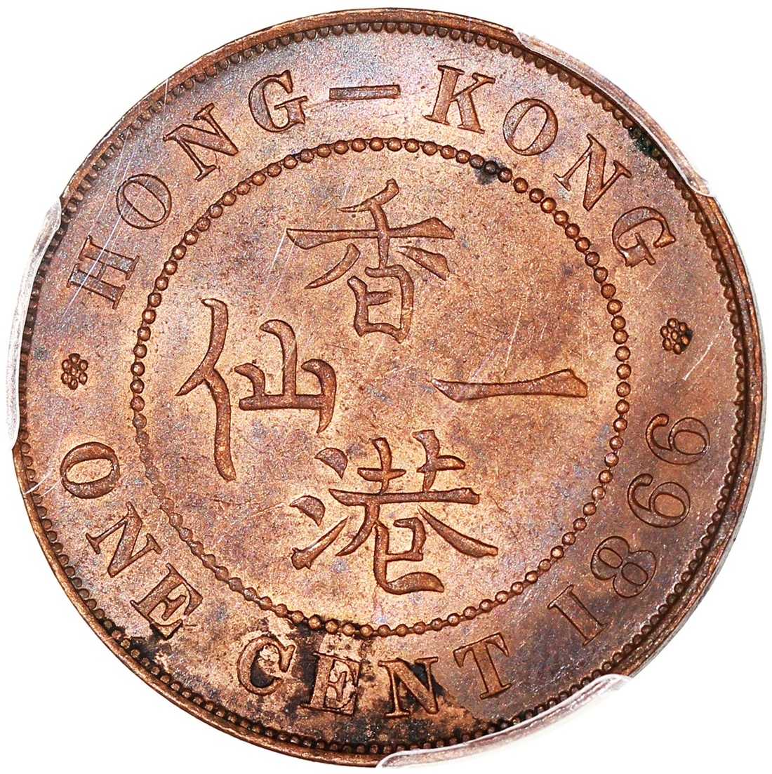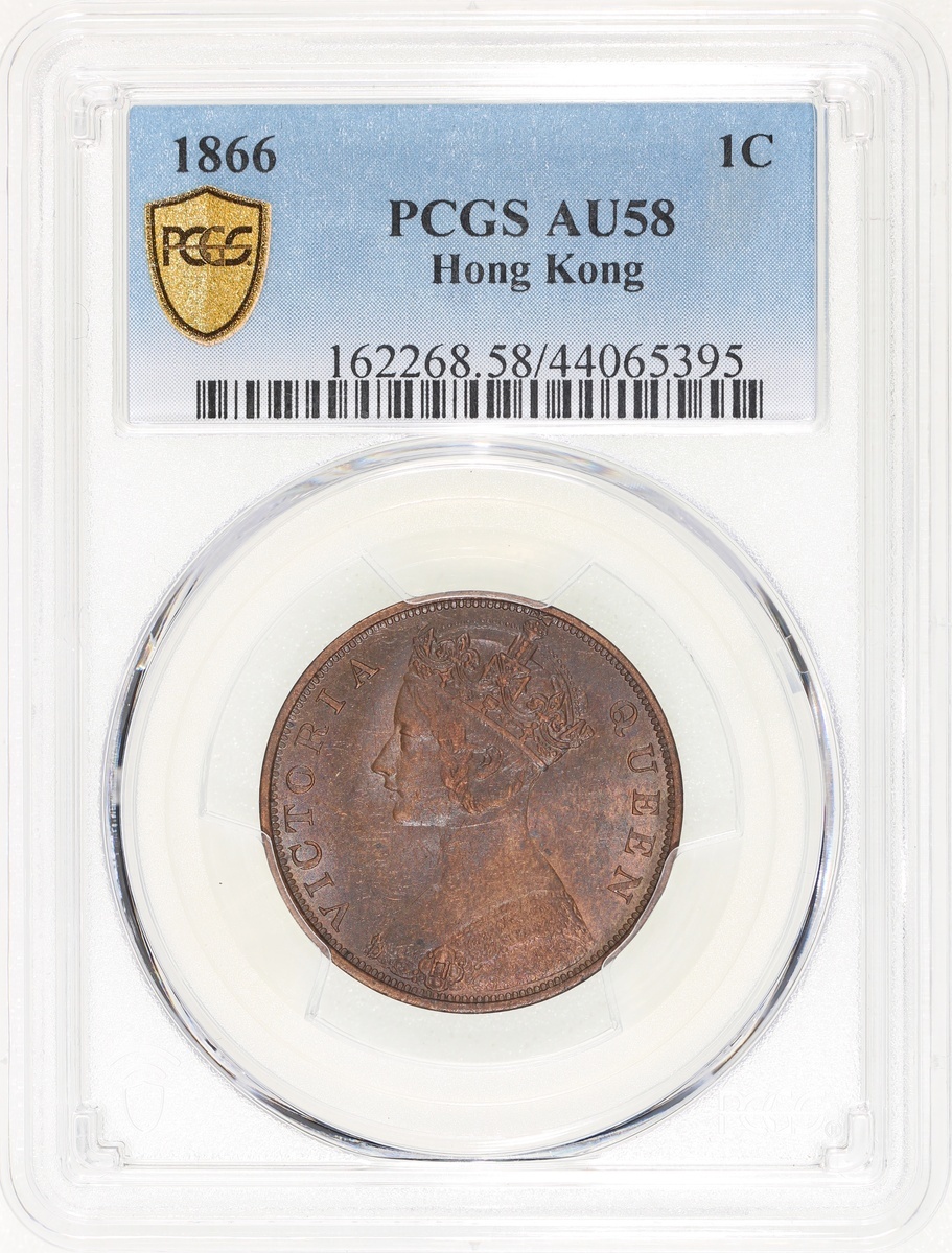 1866年香港維多利亞一仙,PCGS AU58,#44065395