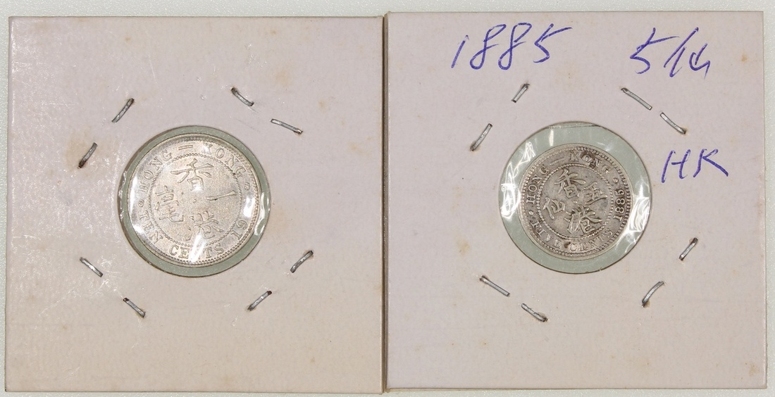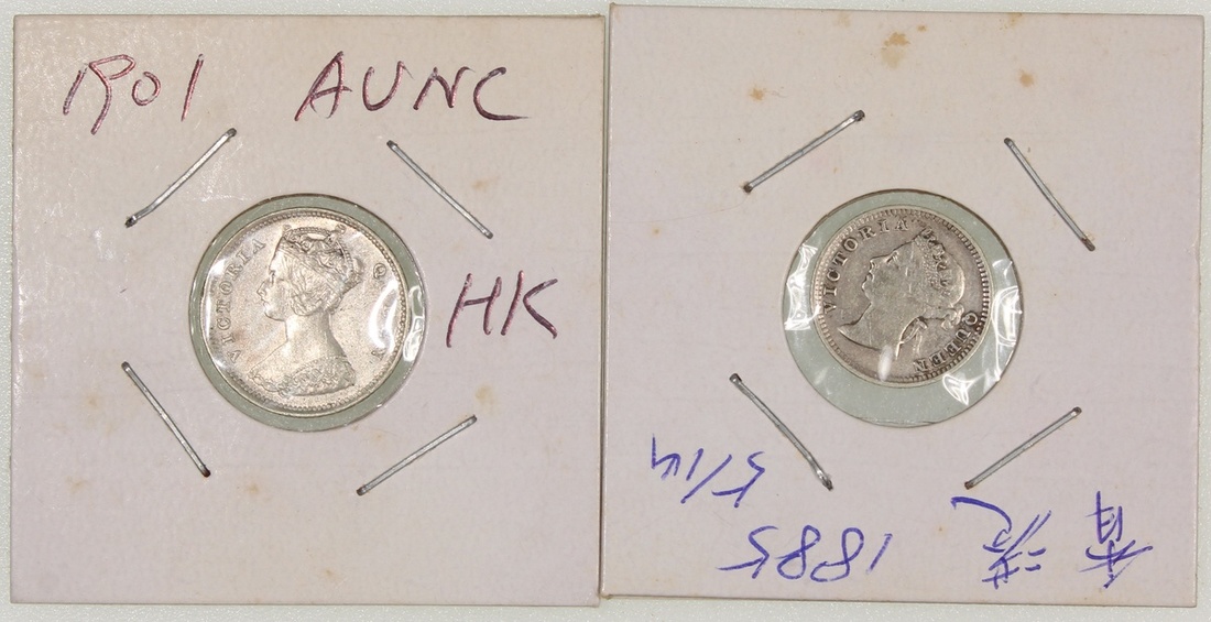 1885年香港維多利亞五仙及1901年香港維多利亞一毫,AUNC品相