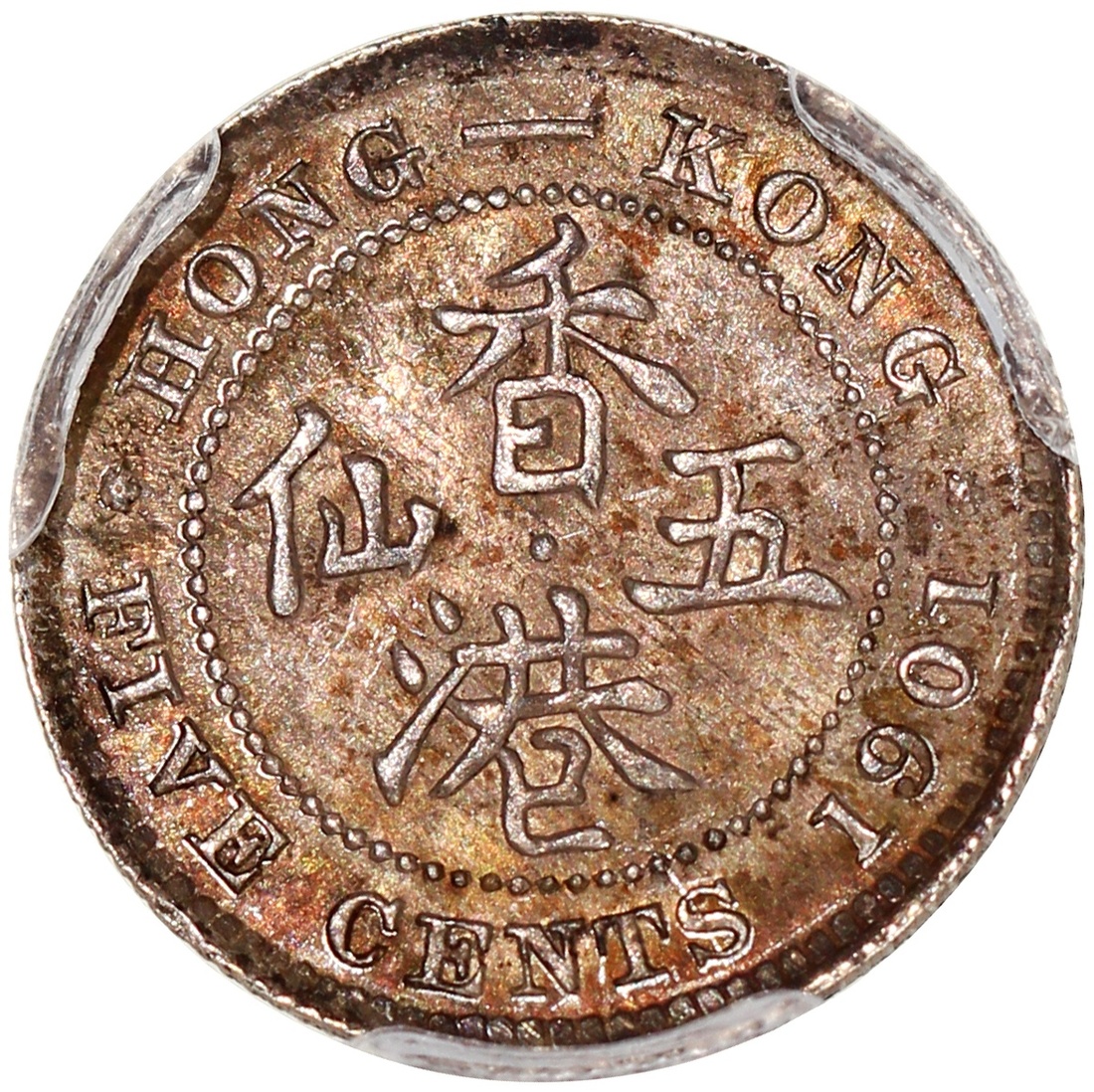 Hong Kong, silver 5 cents, 1901, Victoria on obverse, PCGS MS63, cert. #45695698