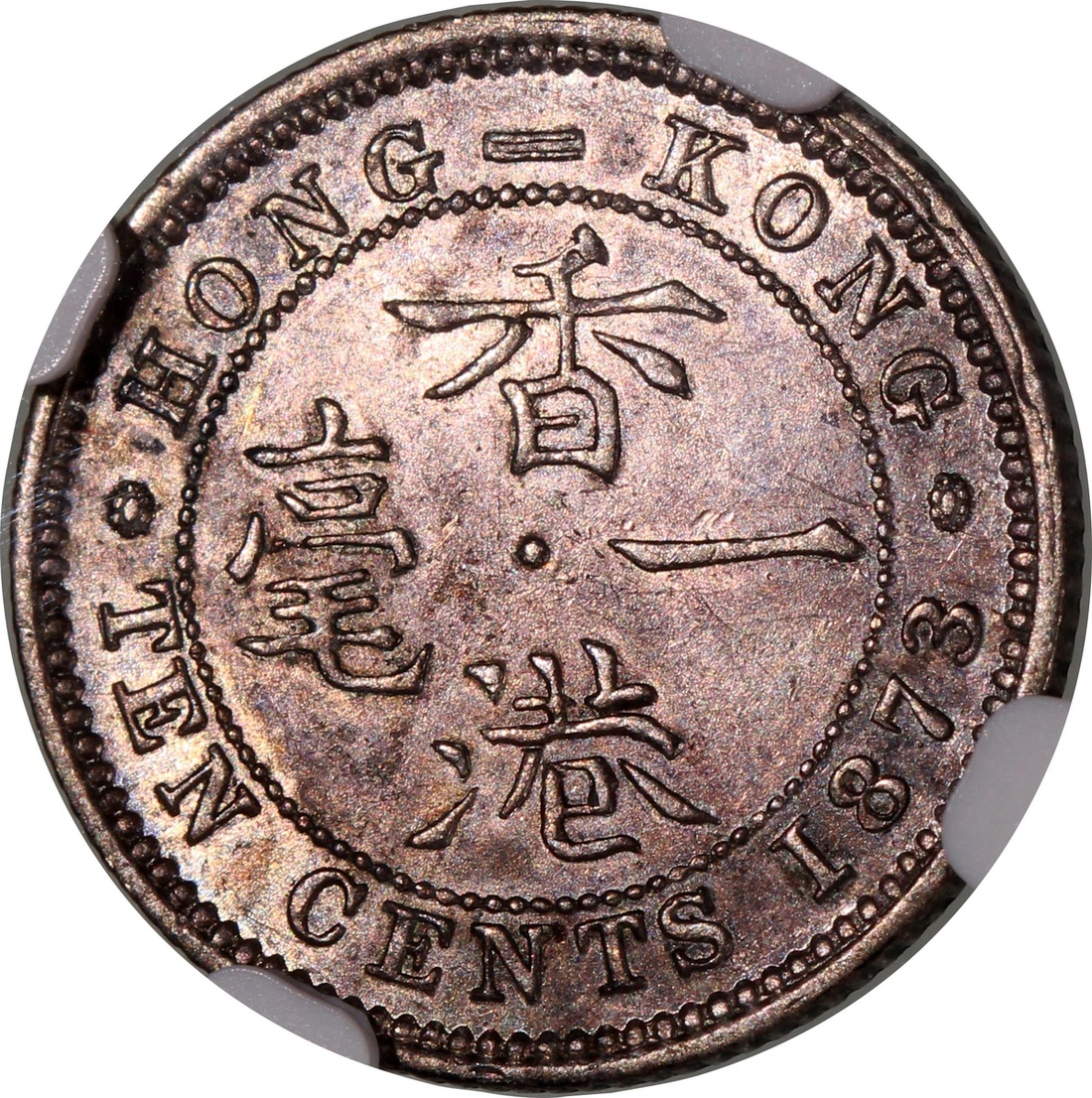 Hong Kong, silver 10 cents, 1873, NGC AU55, #6492153-006.