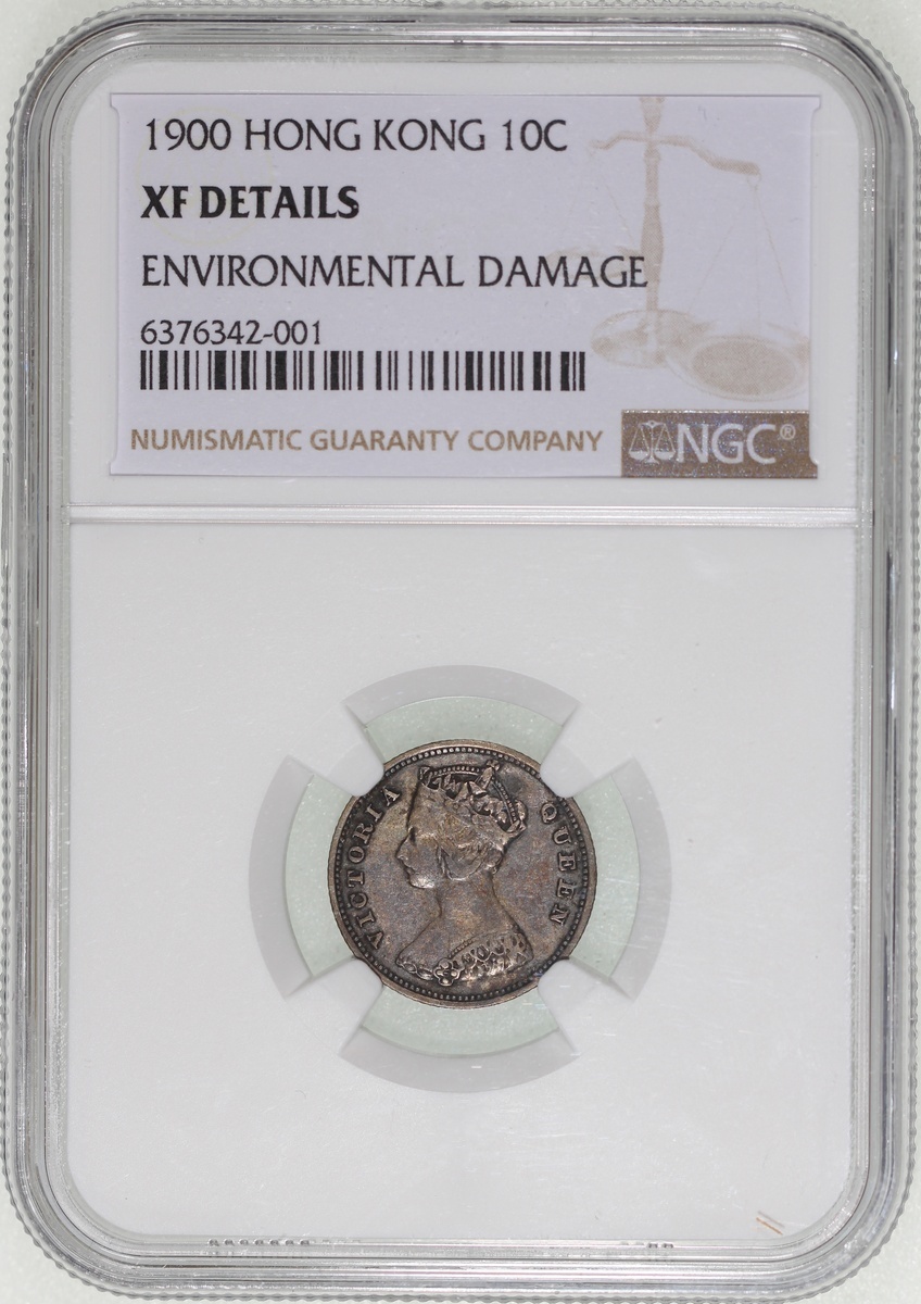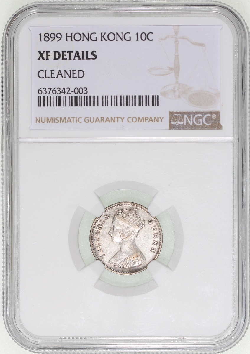 Hong Kong, a group of 3x 10 cents, 1893, 1899 and 1900, graded NGC XF Details (Cleaned), XF Details (Environmental Damage) and AU Details (Cleaned) respectively, #6376342-003, 6376342-001 and 2886314-008 (3).